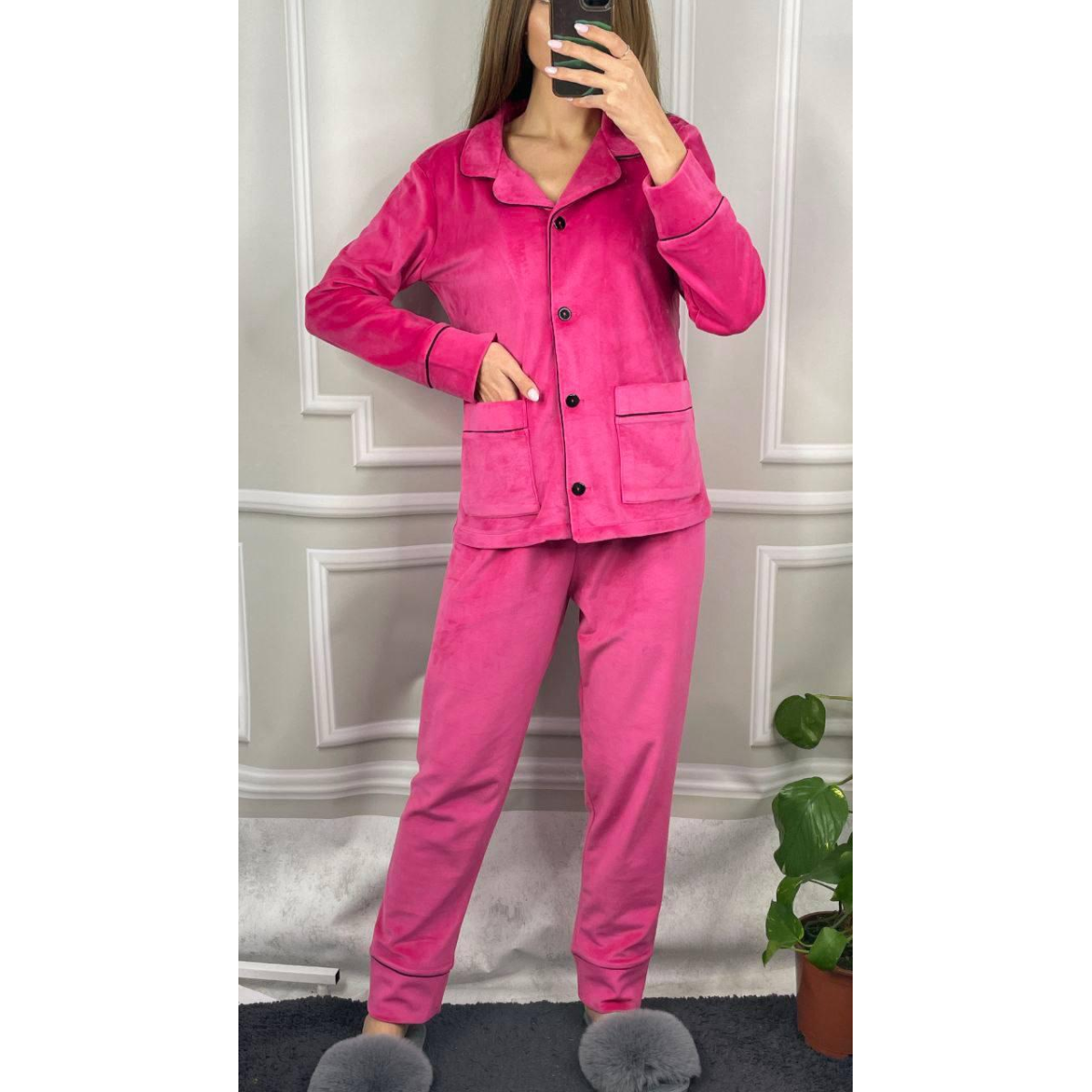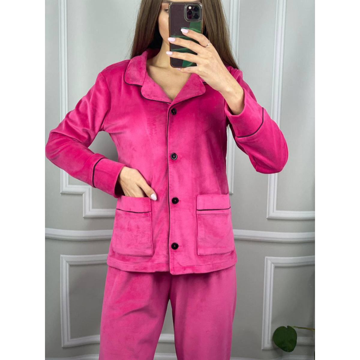 Костюм з плюшевого велюру на ґудзиках із двома кишенями. Малиновий, L