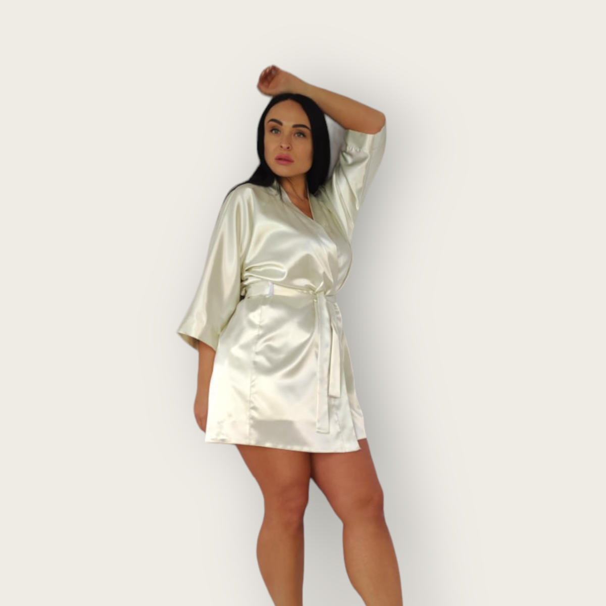 Халат жіночий атласний на запах виконаний із стрейч-атласу, що дає додаткову свободу руху.
