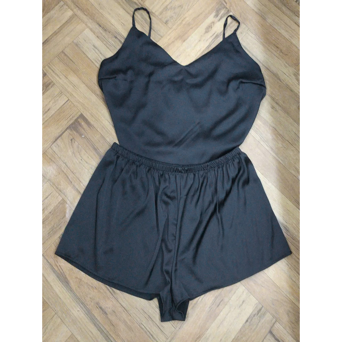 Піжама жіноча шовкова із шортами чорна 52