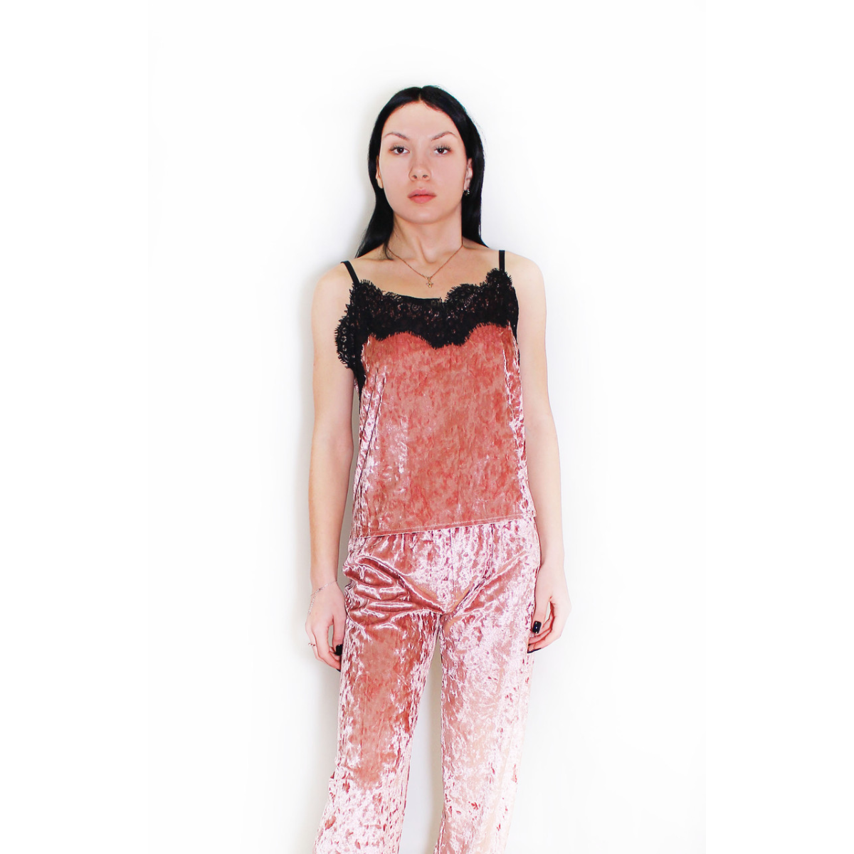 Хочете виглядати розкішно в дома? Тепер це дуже просто з комплектом з мармурового велюру прикрашеного мереживом. У ньому ви відчуєте себе неймовірно чарівною.