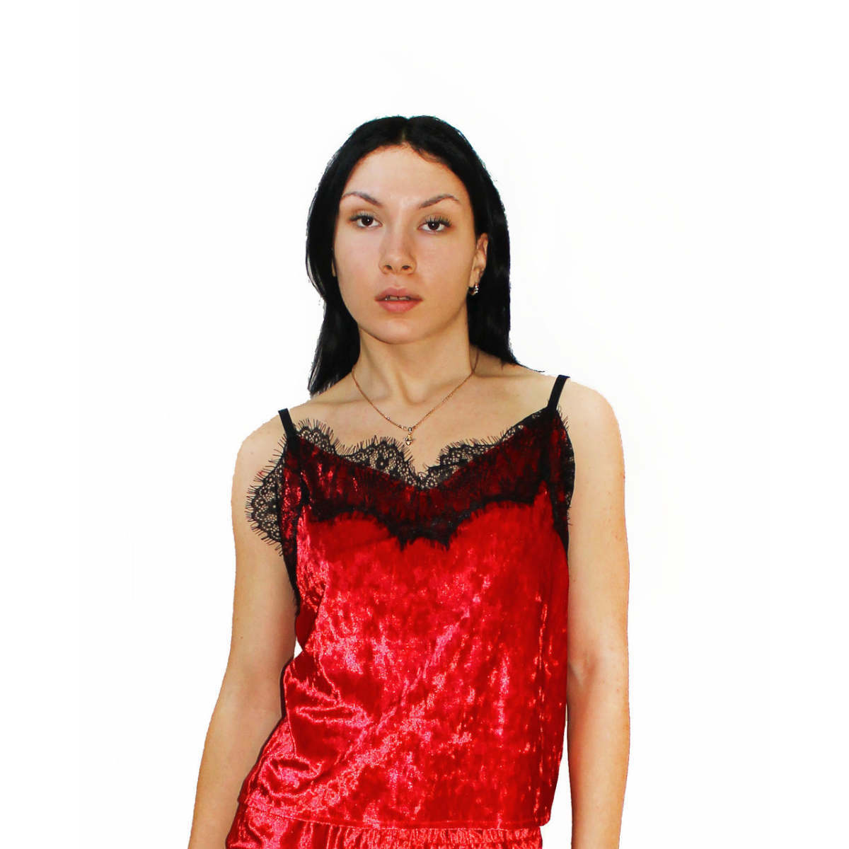 Хочете виглядати розкішно в дома? Тепер це дуже просто з комплектом з мармурового велюру прикрашеного мереживом. У ньому ви відчуєте себе неймовірно чарівною.