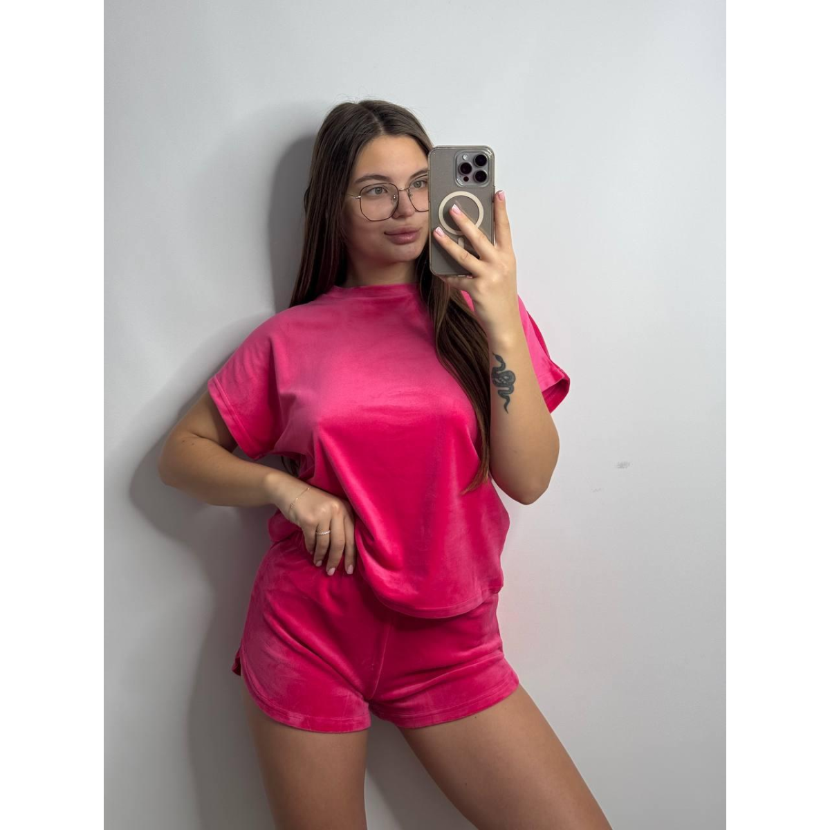 Піжама футболка + шорти з плюшевого велюру L, Малина