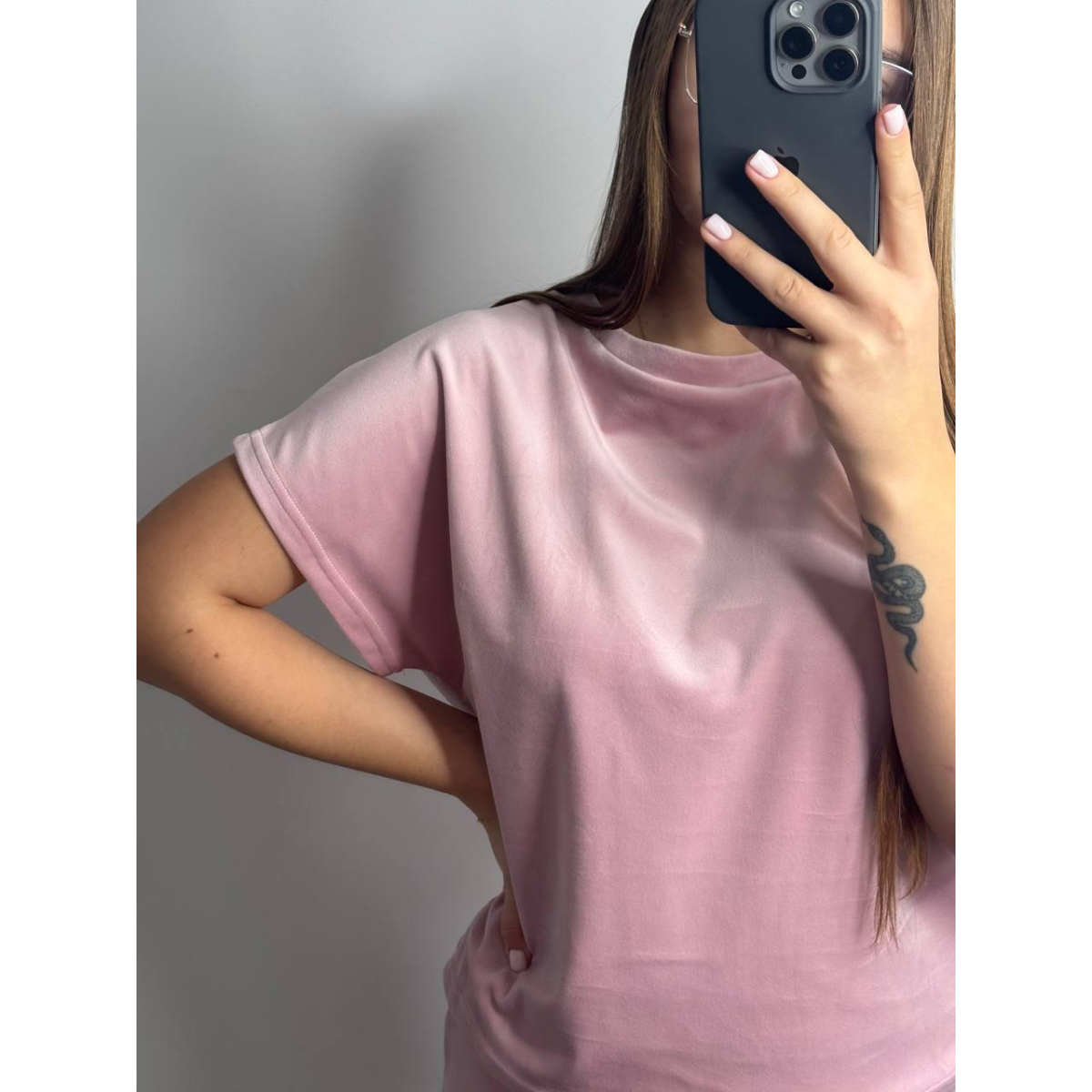 Піжама футболка + шорти з плюшевого велюру M, Пудра