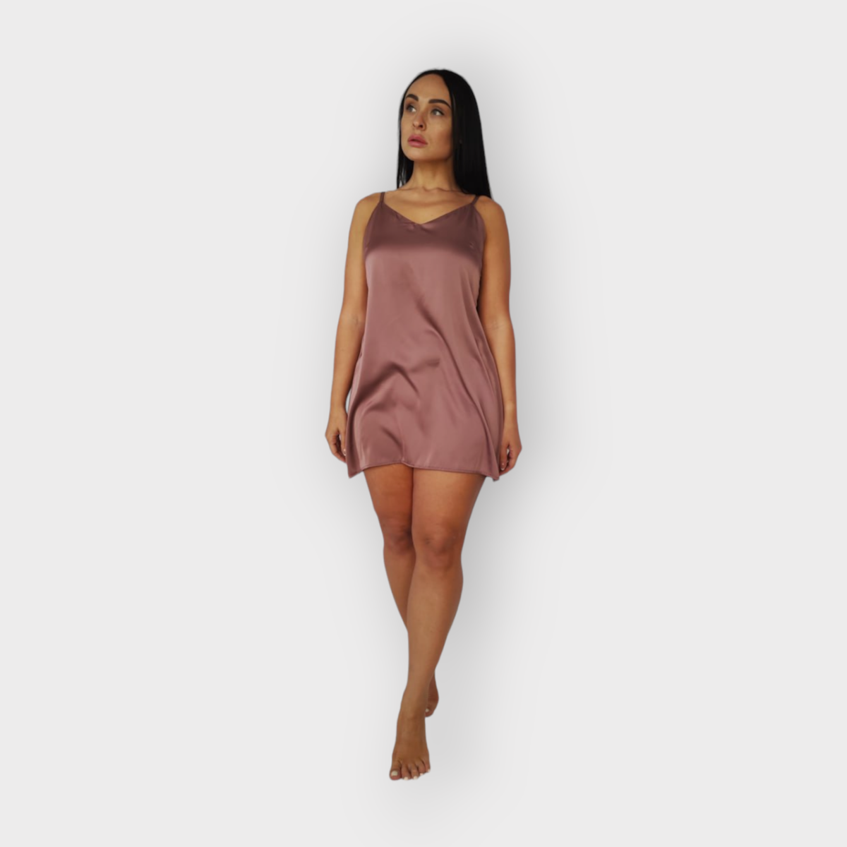 Жіноча нічна сорочка шовкова на регульованих бретельках. Какао, 3XL/4XL