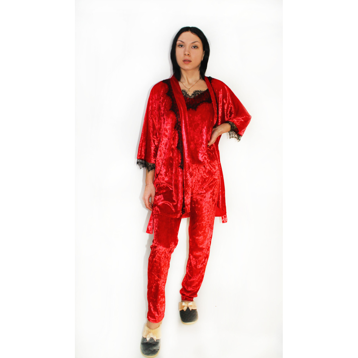 Романтичний жіночий комплект майка з шортами і халатик, виконані з ніжного мармурового велюру.