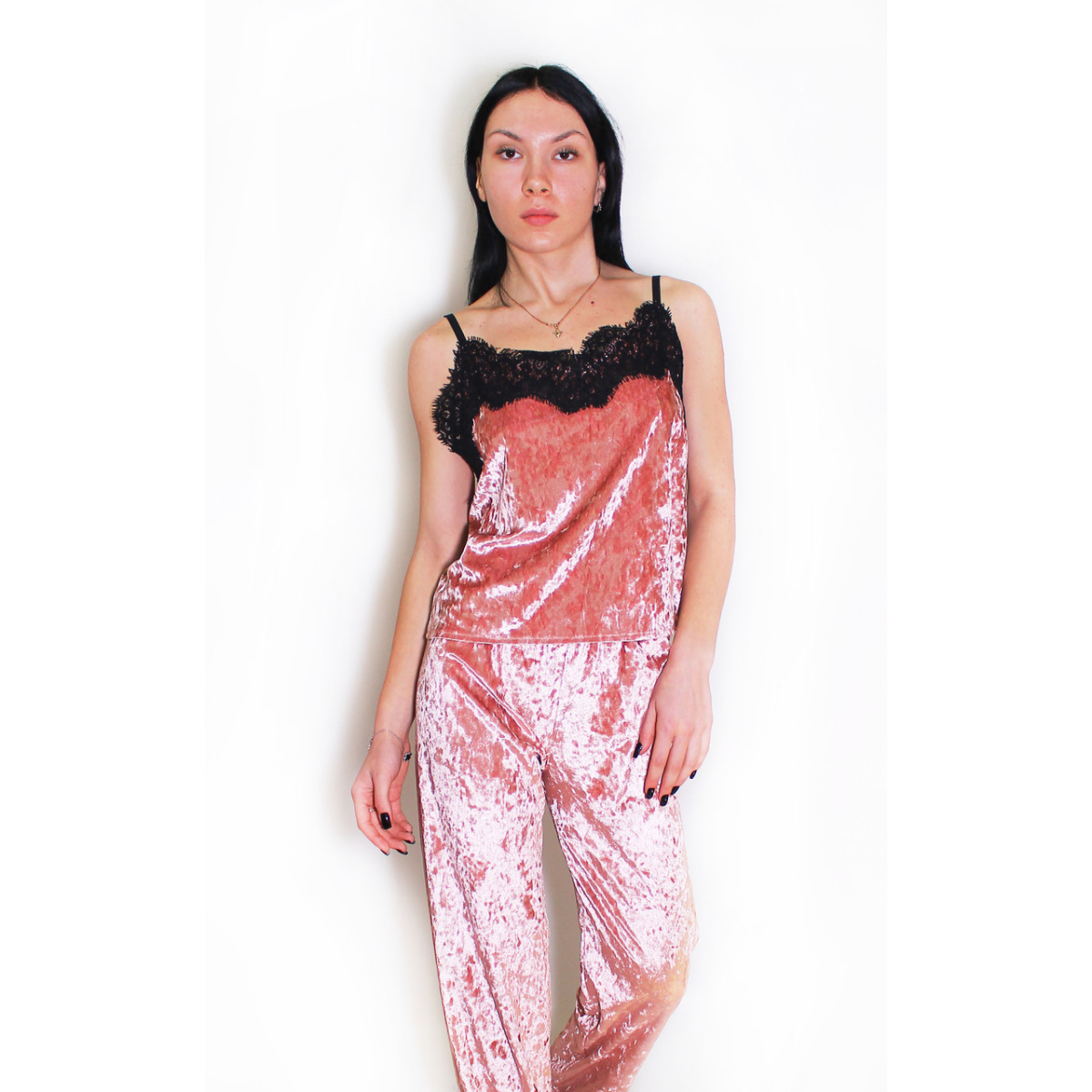Хочете виглядати розкішно в дома? Тепер це дуже просто з комплектом з мармурового велюру прикрашеного мереживом. У ньому ви відчуєте себе неймовірно чарівною.