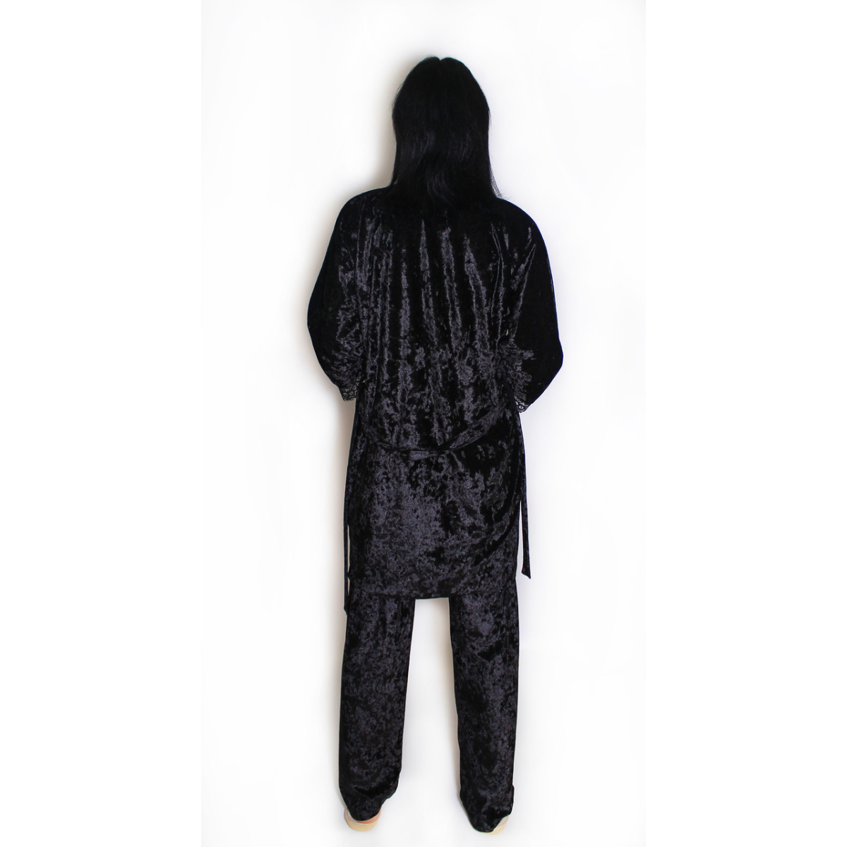 Хочете виглядати розкішно в дома? Тепер це дуже просто з комплектом з мармурового велюру прикрашеного мереживом. У ньому ви відчуєте себе неймовірно чарівною.