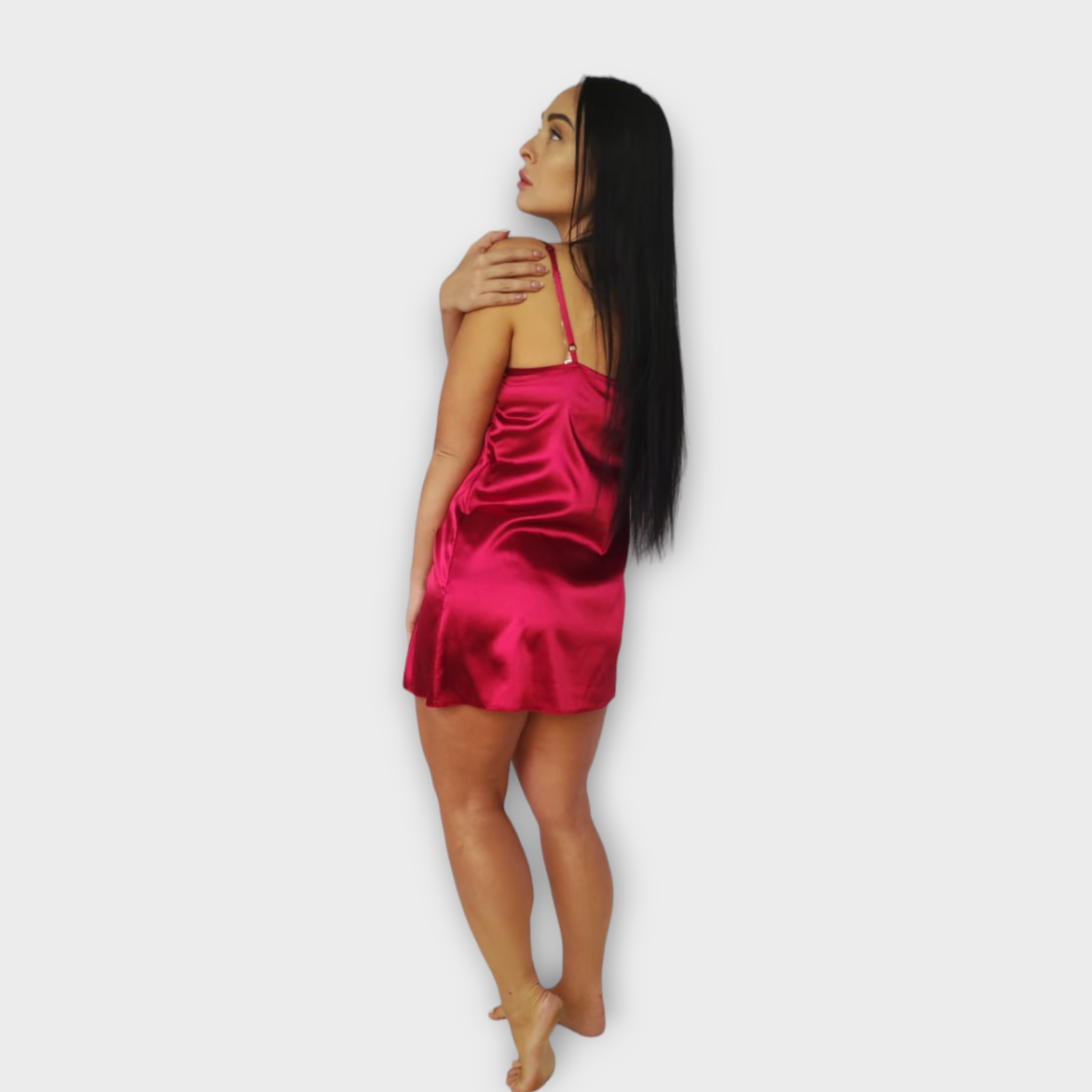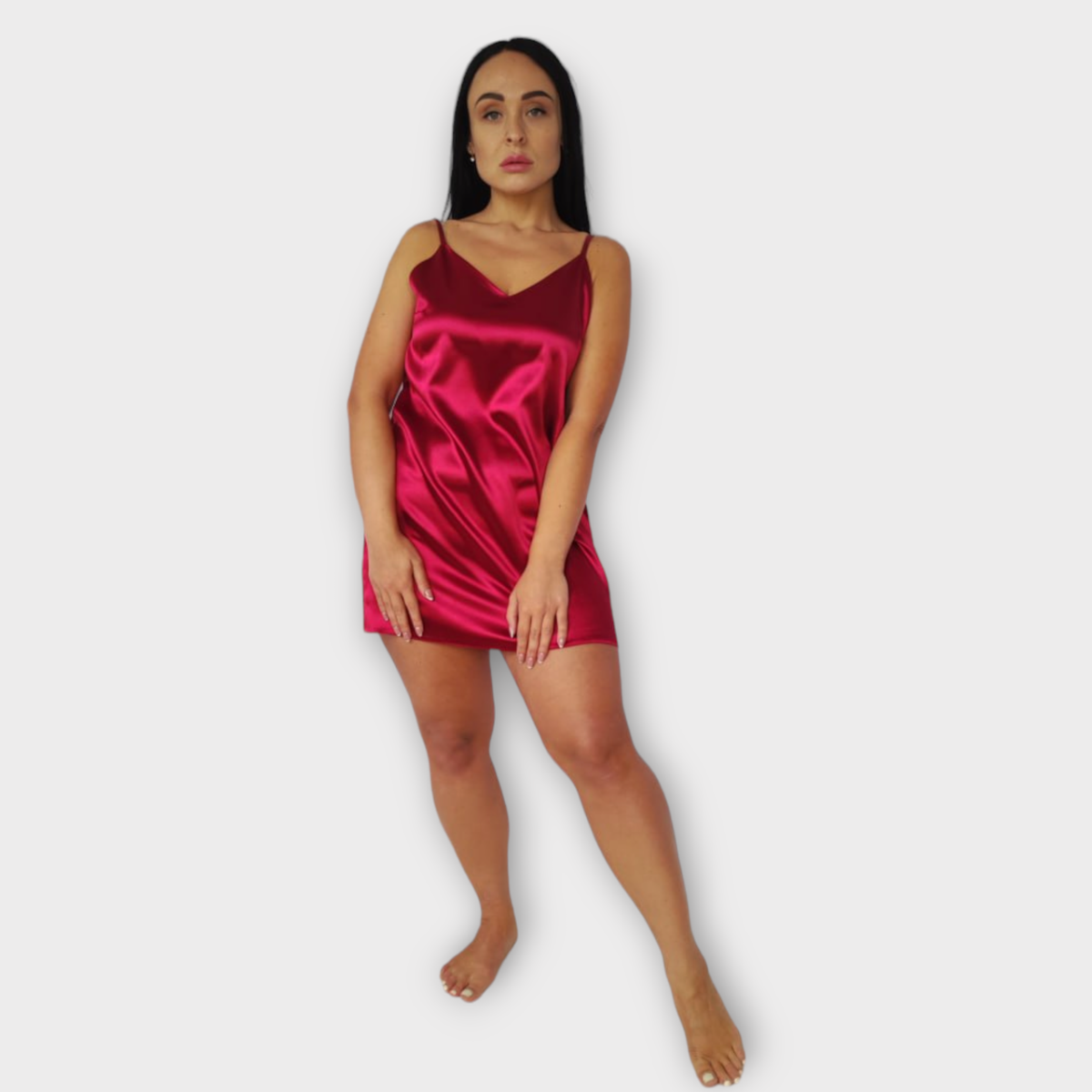 Жіноча нічна сорочка атласна на регульованих бретельках. Бордо, 4XL