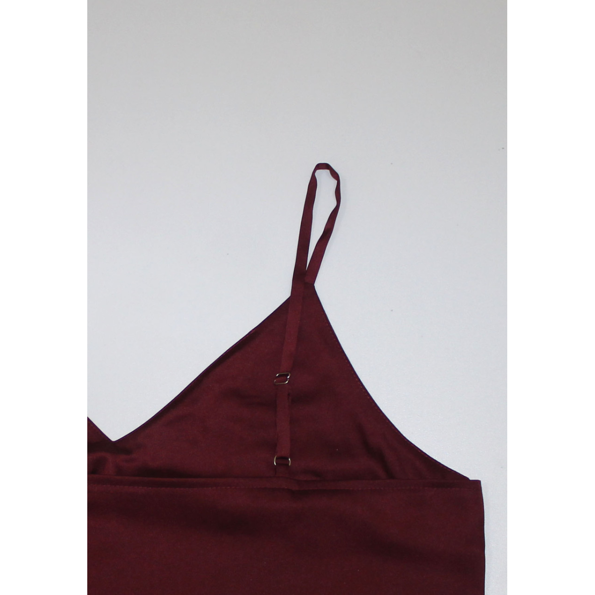 Жіноча нічна шовкова сорочка на регульованих бретельках. XS/S, Бордо