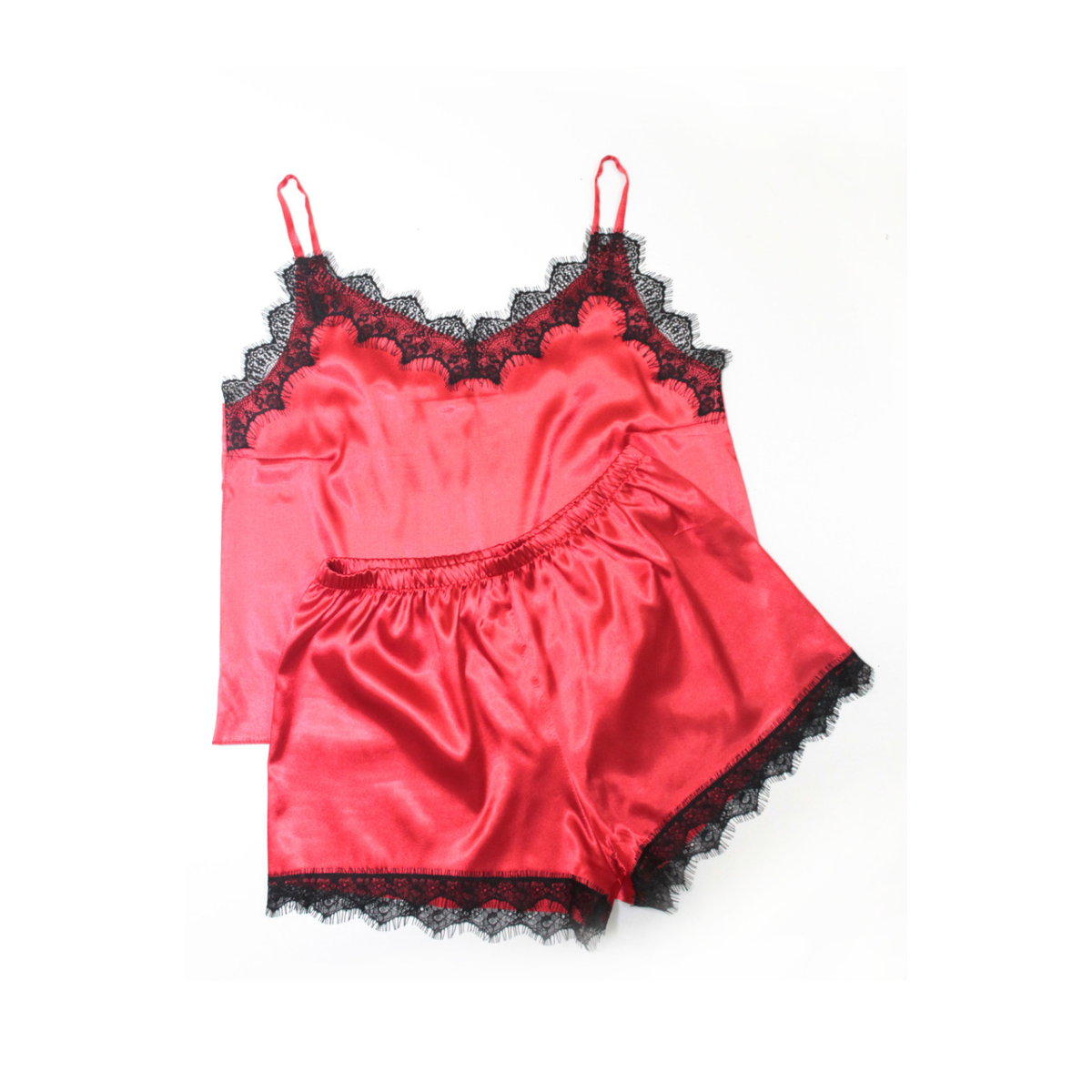 Піжама жіноча атласна майка та шорти з мереживом, червоний 44