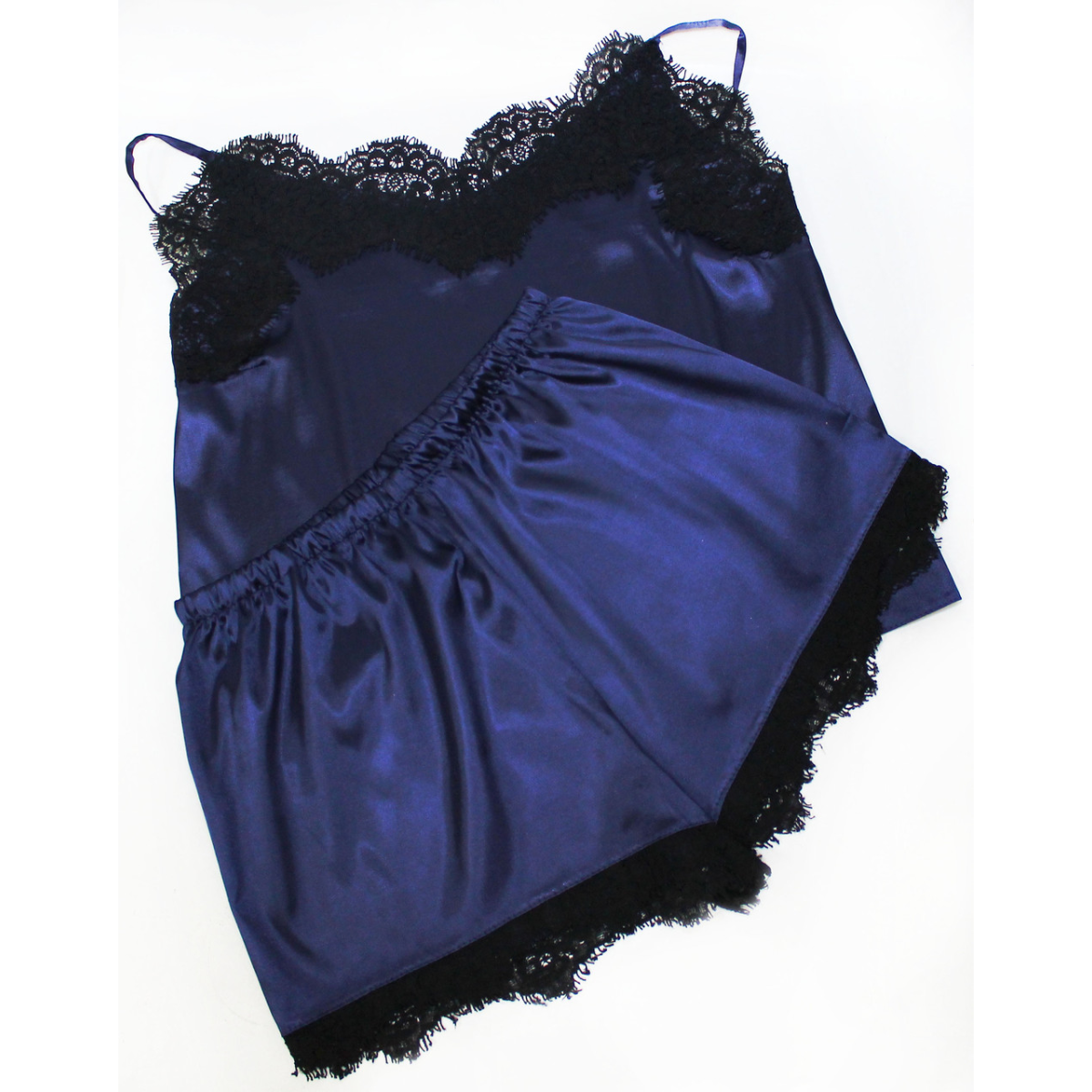 Піжама жіноча атласна майка та шорти з мереживом, синій 46
