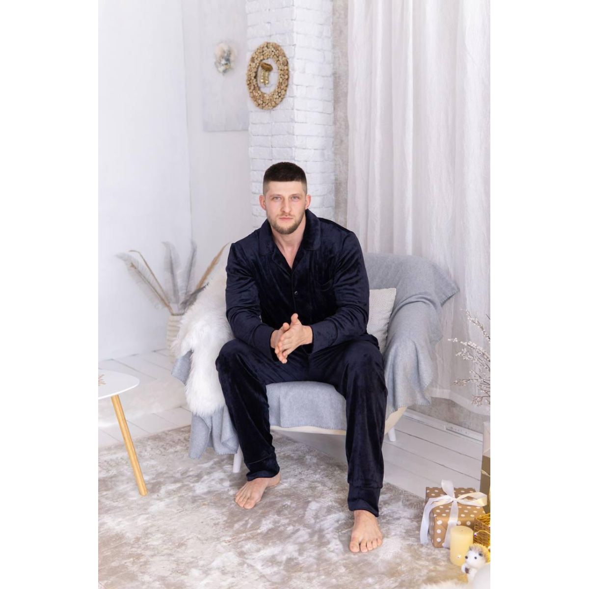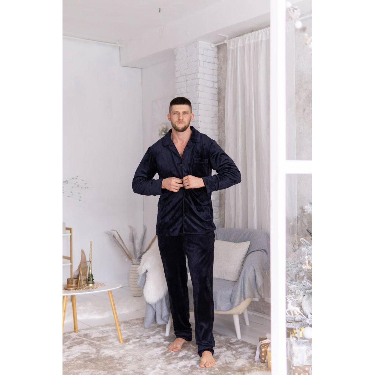 Піжама чоловіча велюрова на ґудзиках Синій, XL