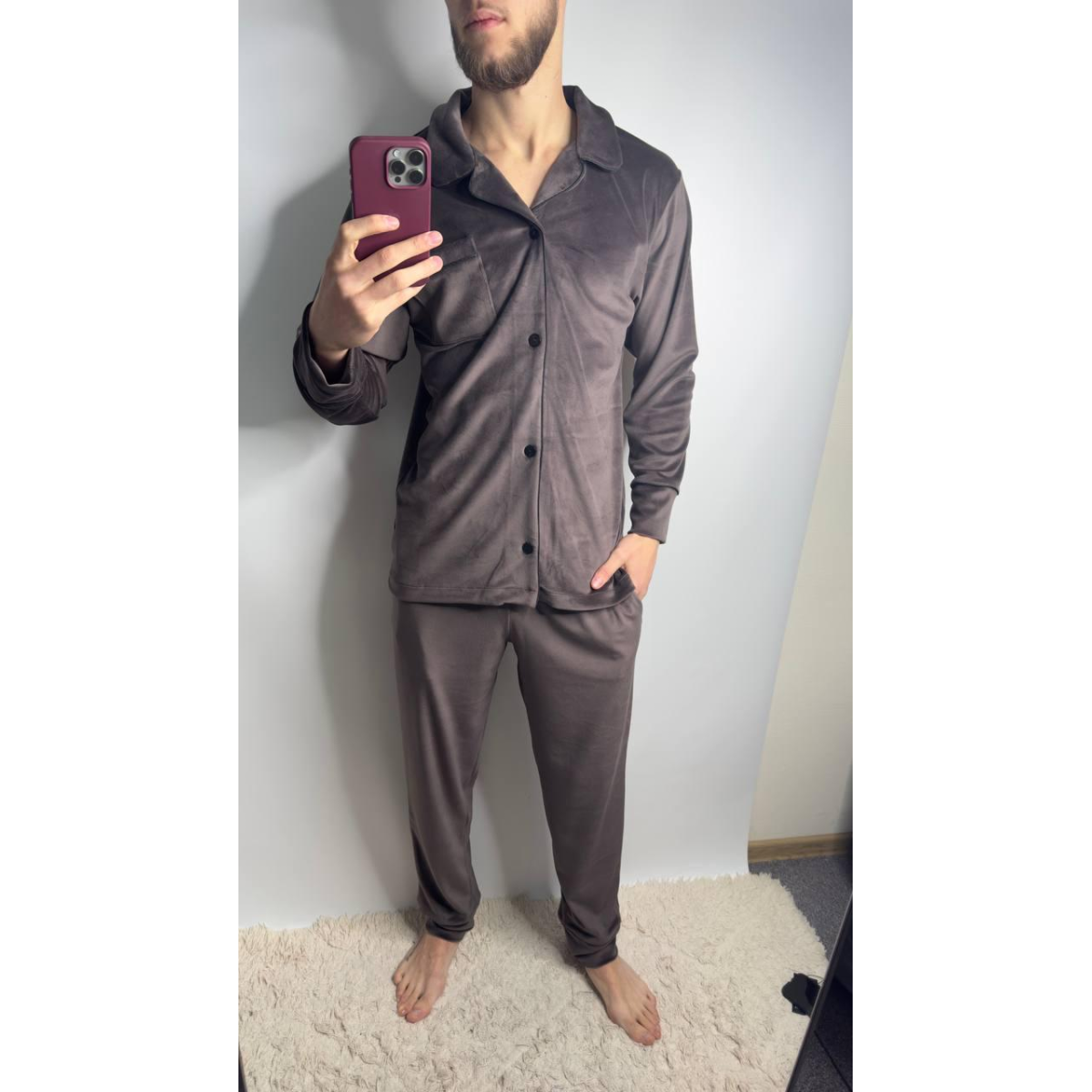 Піжама чоловіча велюрова на ґудзиках Шоколад, M