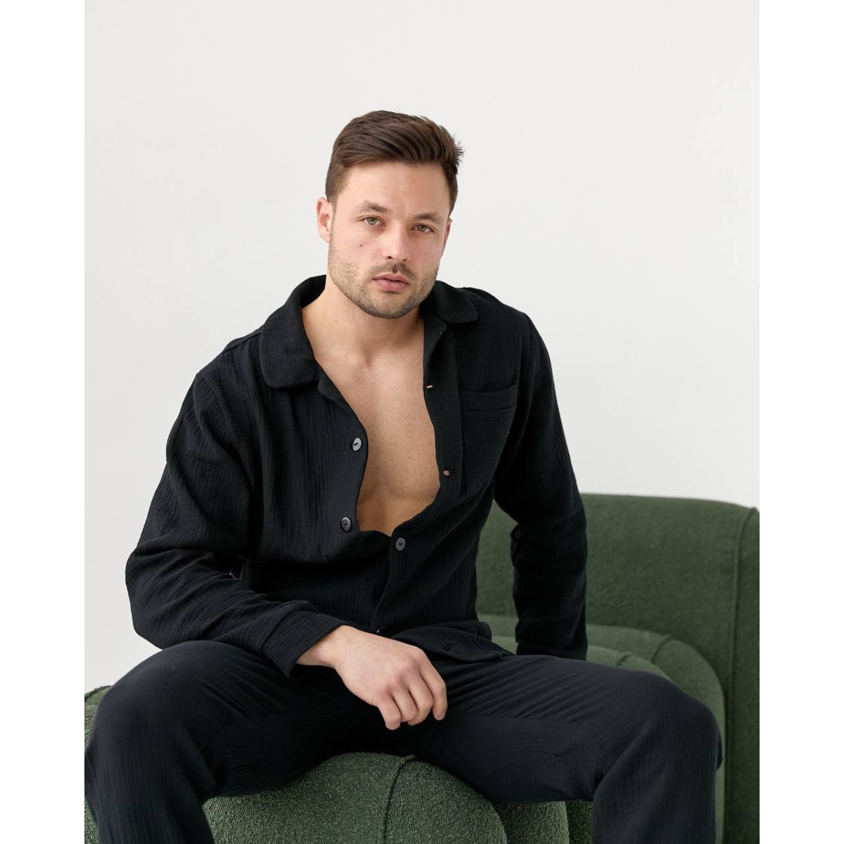 Чоловіча піжама муслінова чорна S