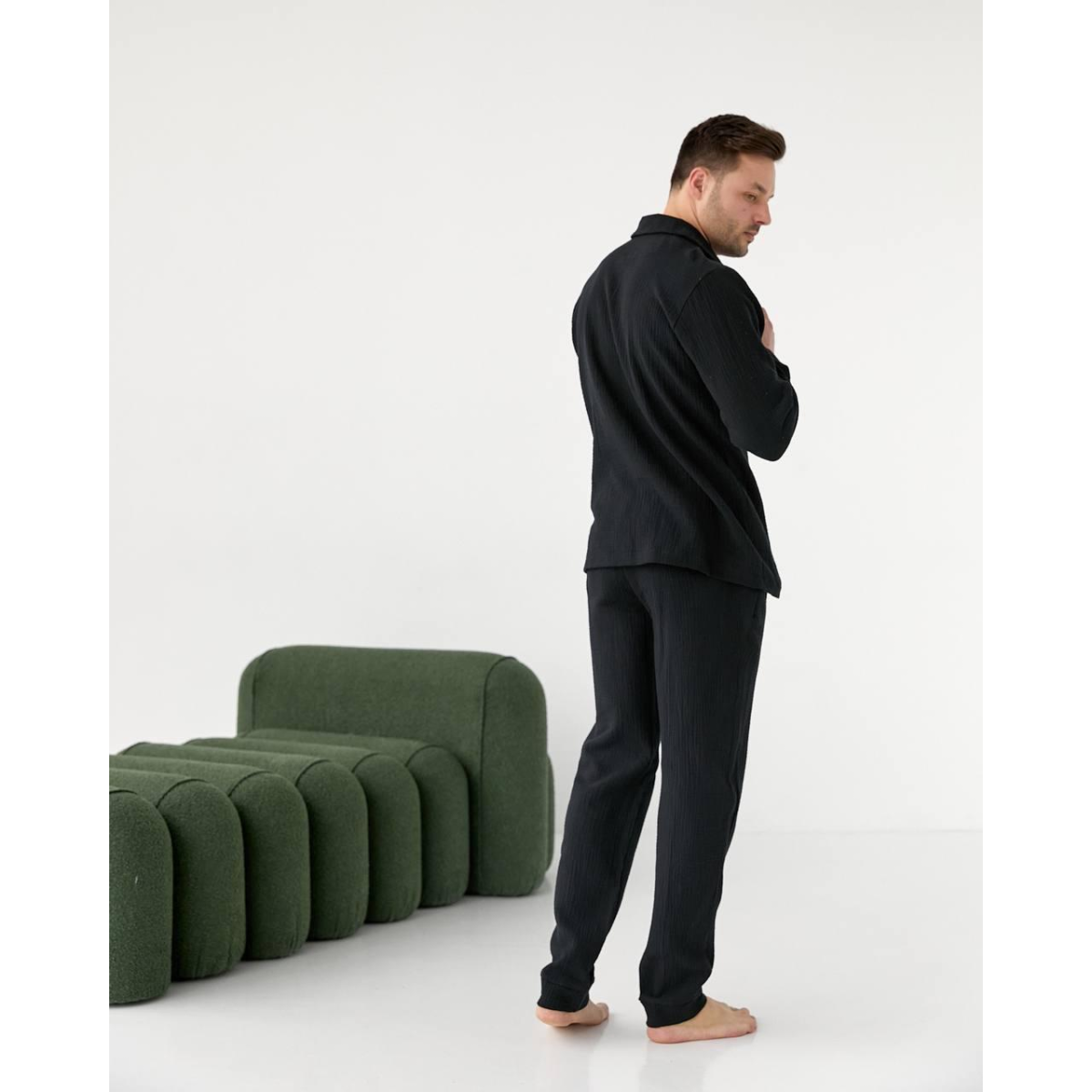 Чоловіча піжама муслінова Чорний, XL