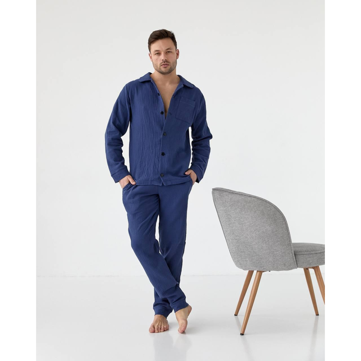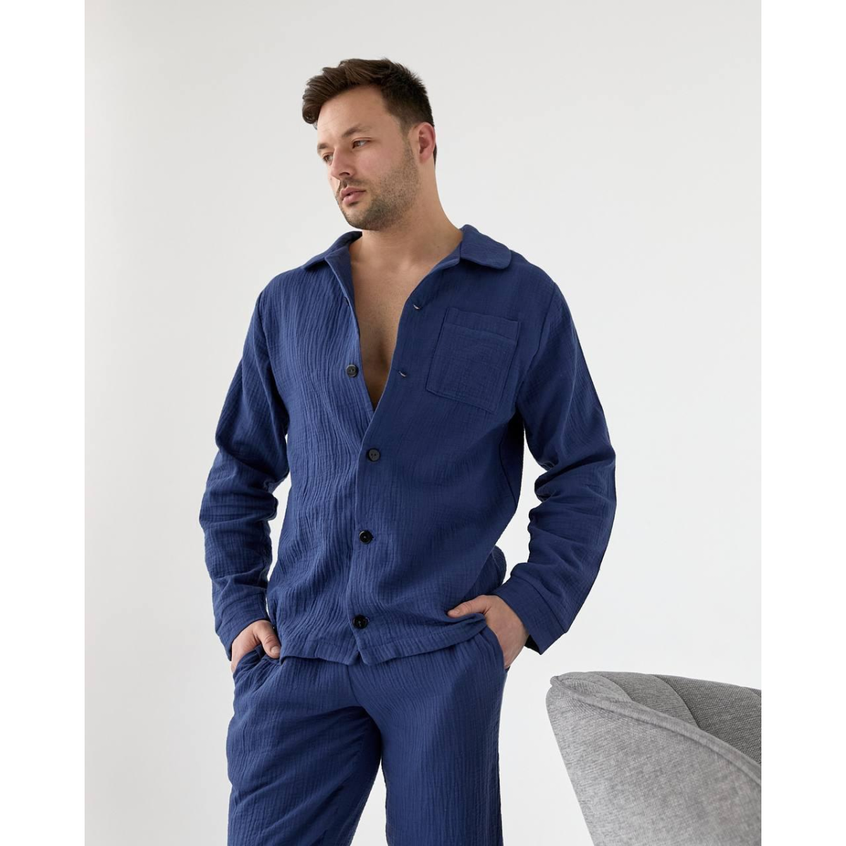 Чоловіча піжама муслінова Синій, XXL