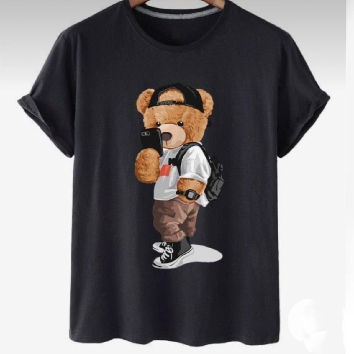 Футболка жіноча турецький трикотаж 3D-накат Чорний, Ведмедик Селфі