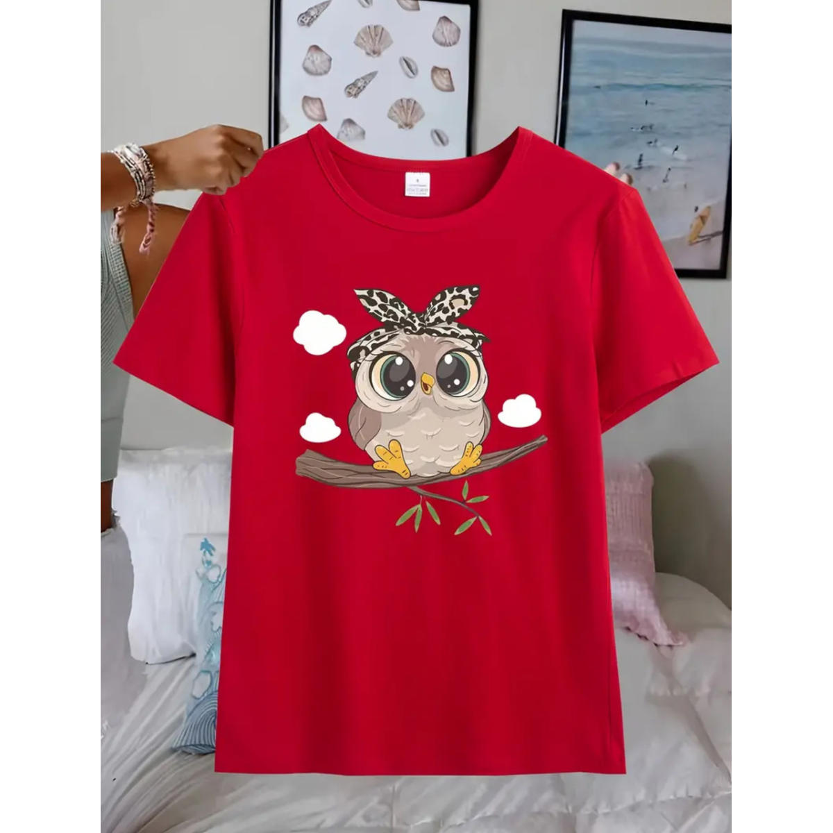 Футболка жіноча турецький трикотаж 3D-накат Червоний, Сова