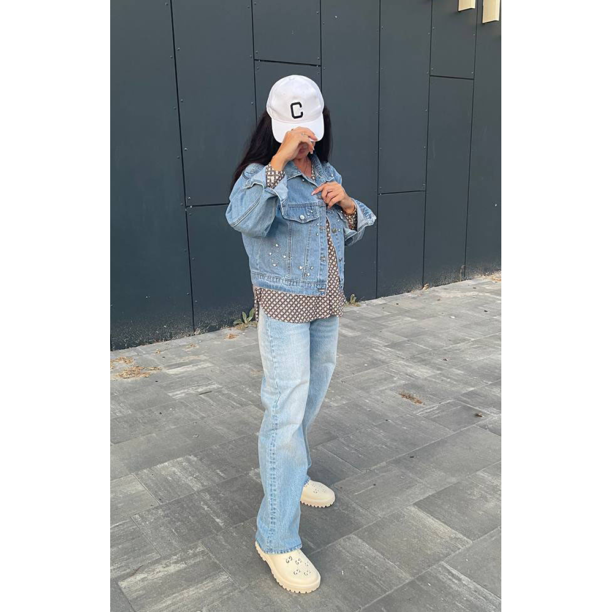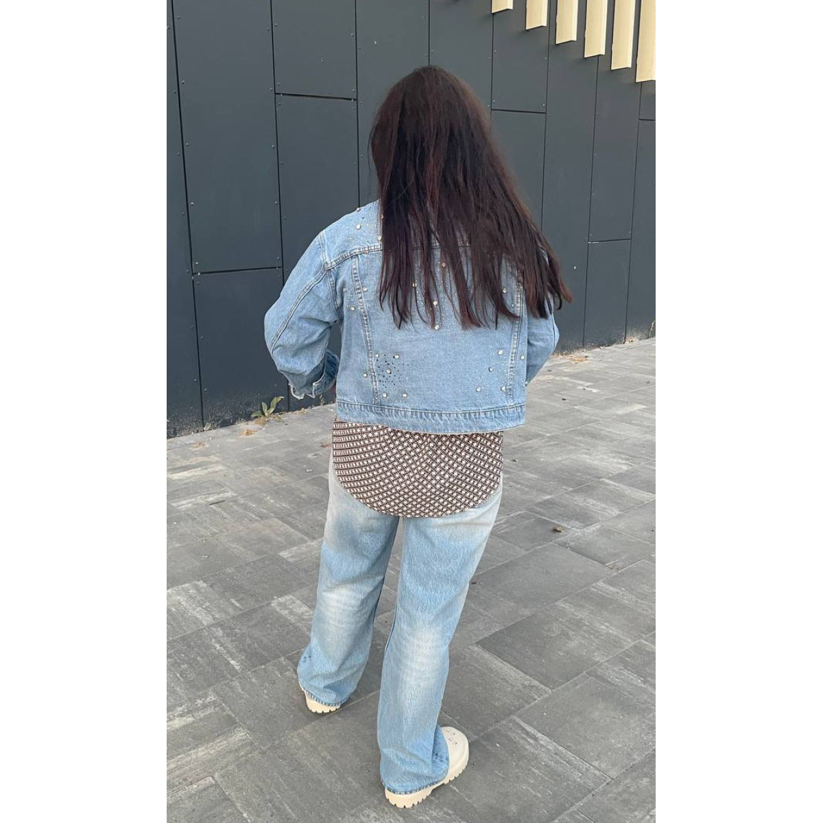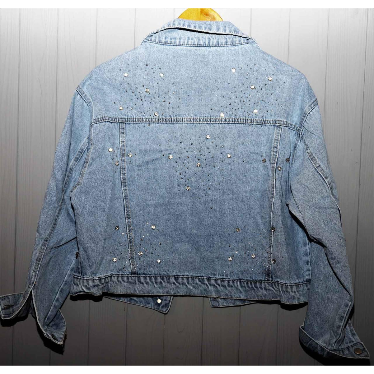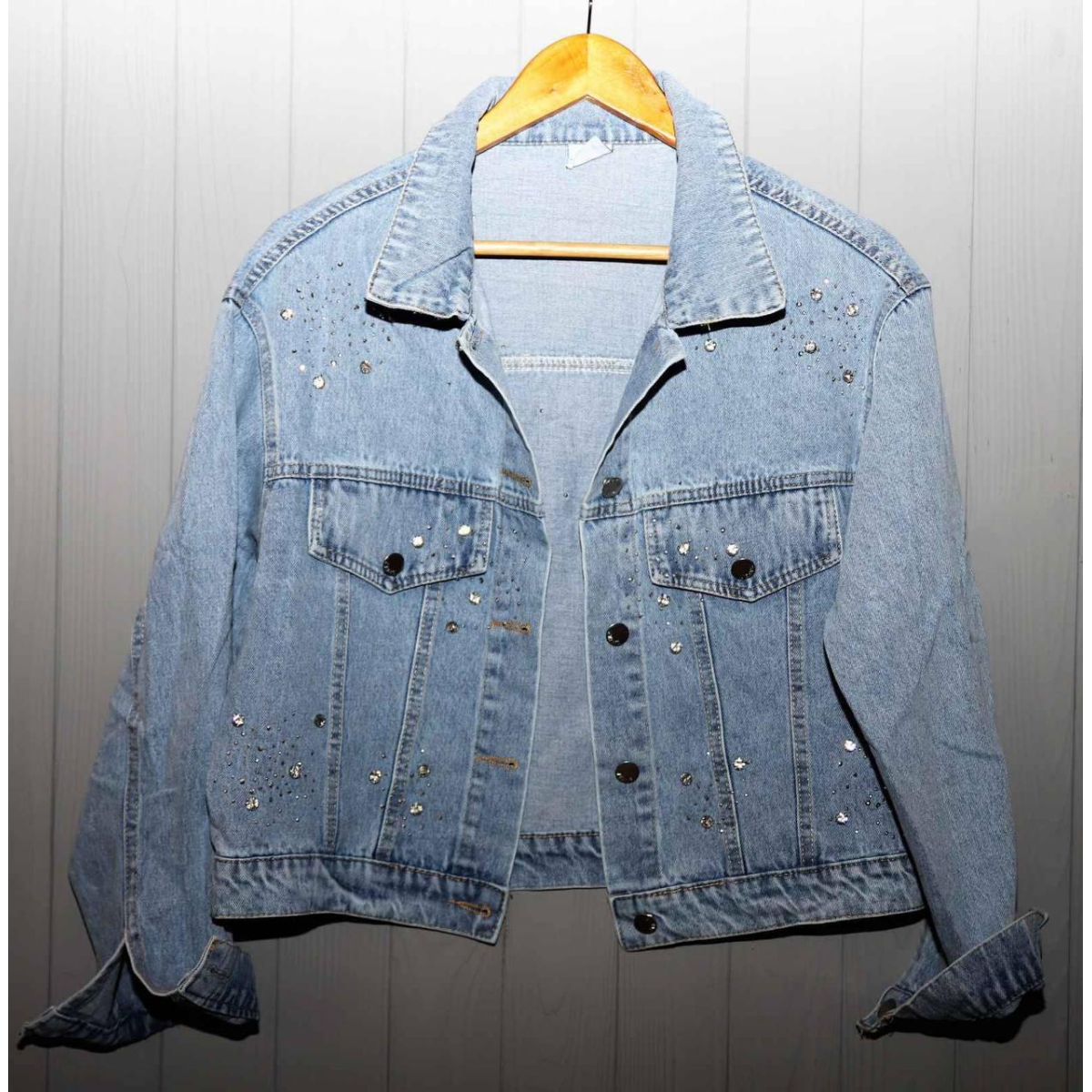 Джинсова куртка жіноча оверсайз з камінням, р.42-46