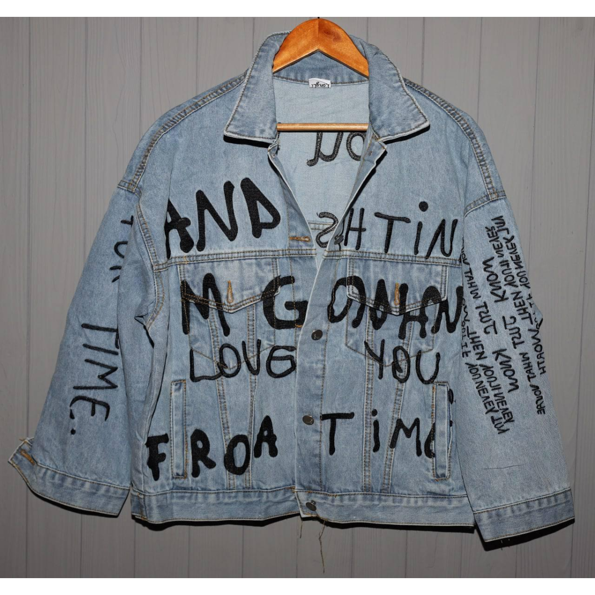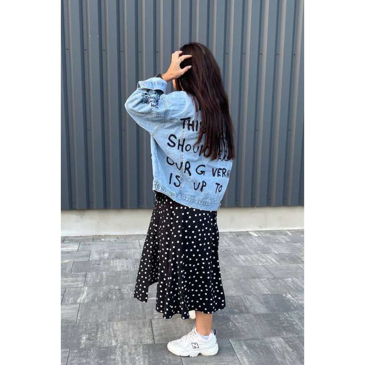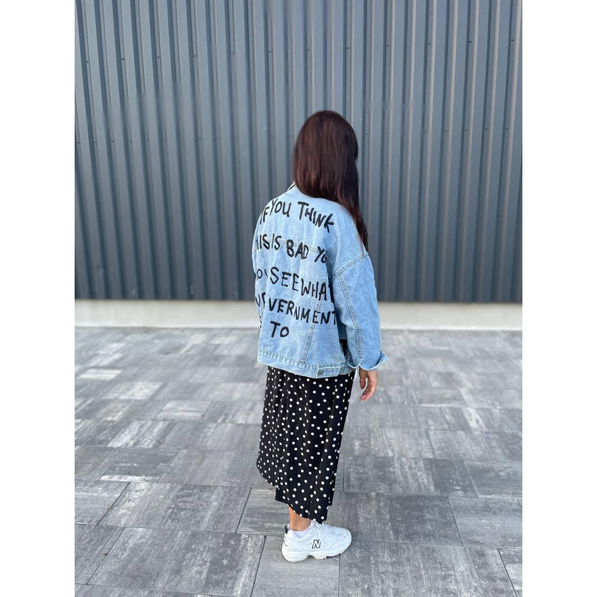 Джинсова куртка жіноча оверсайз з написом, р.42-48