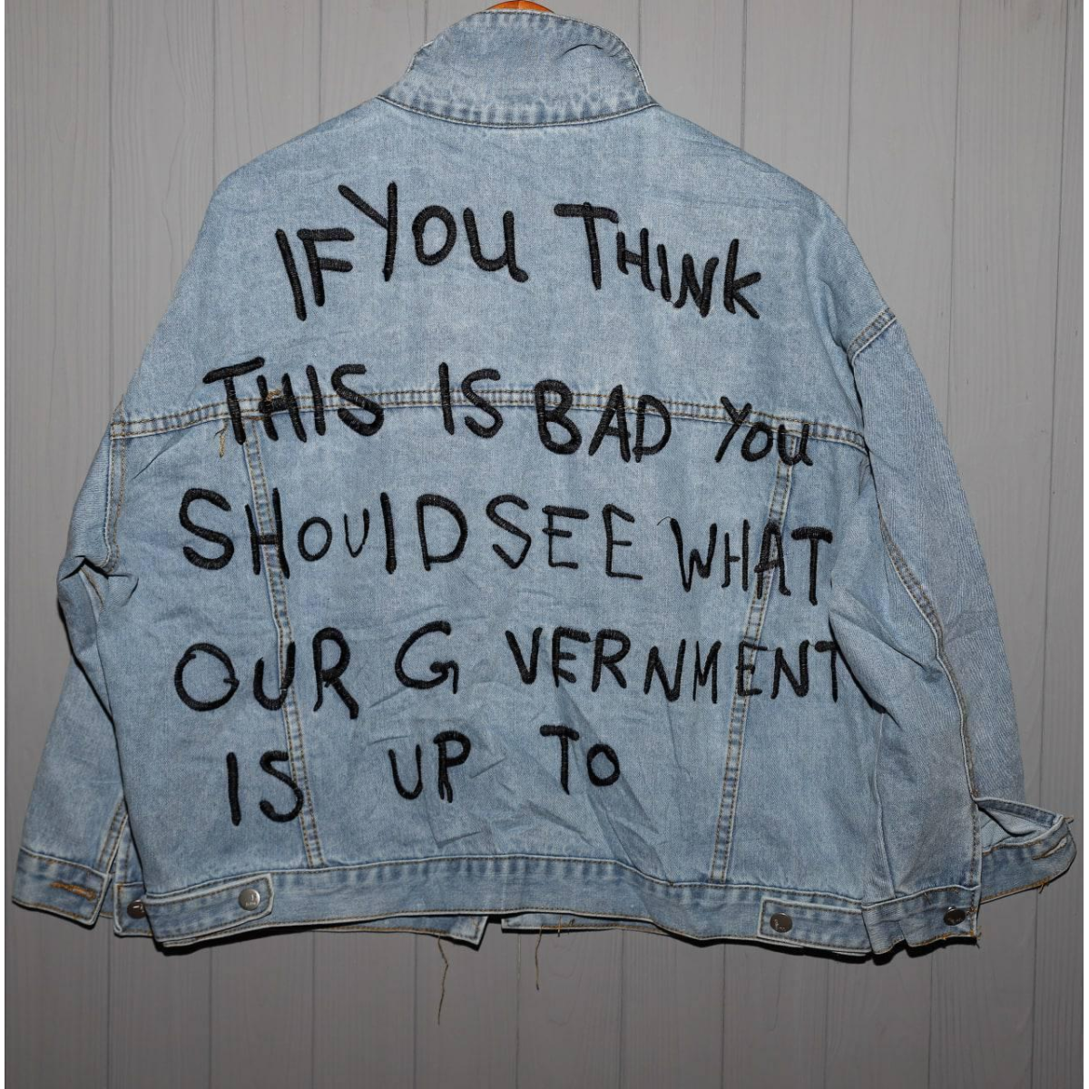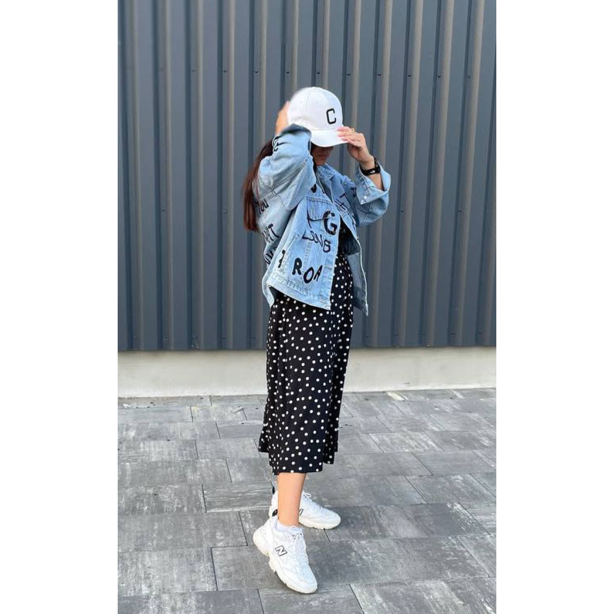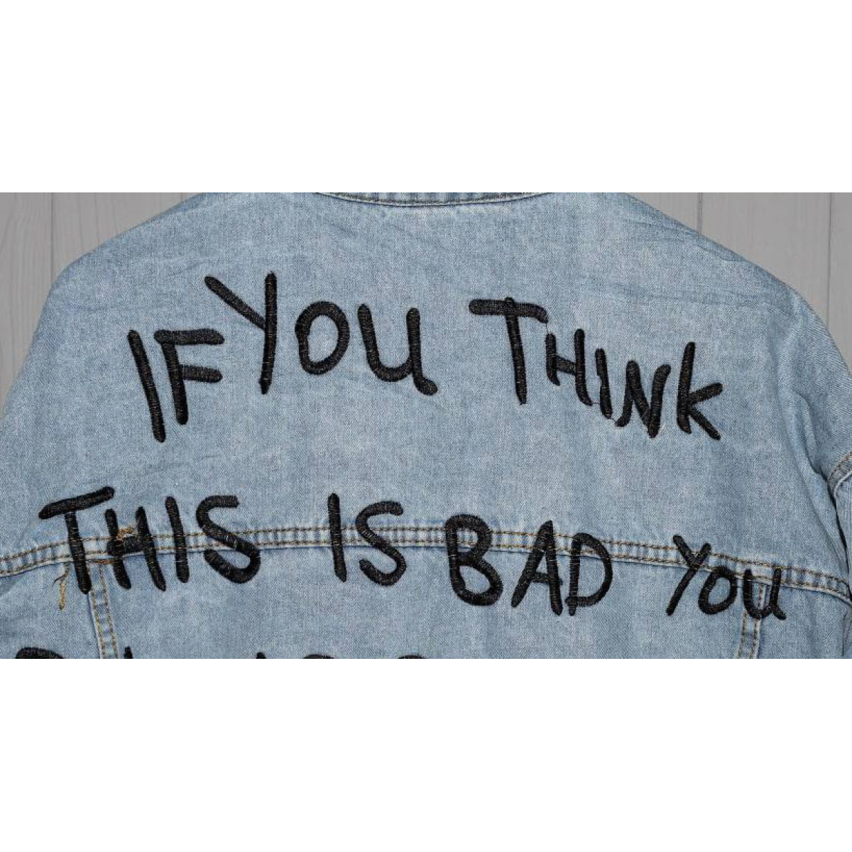 Джинсова куртка жіноча оверсайз з написом, р.42-48