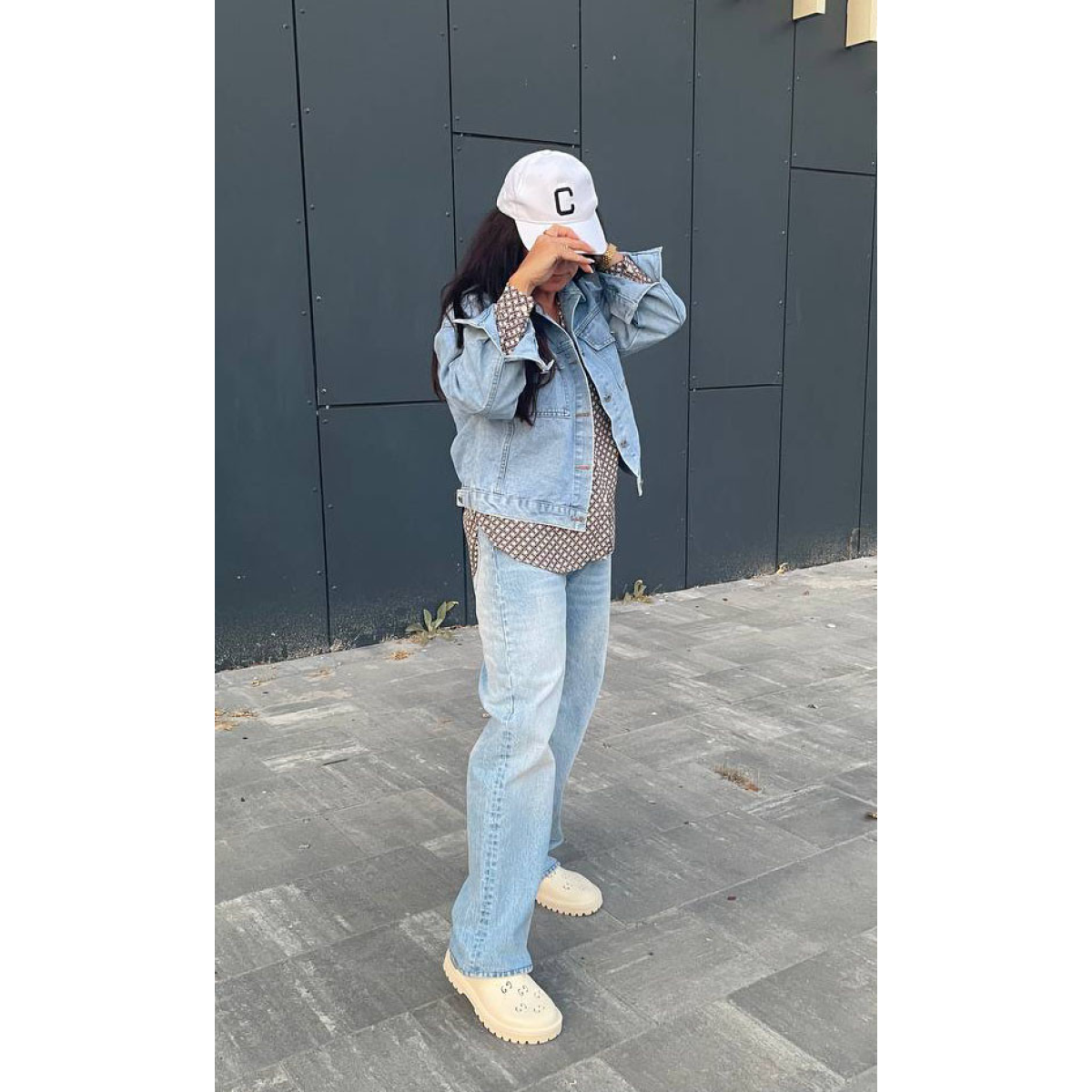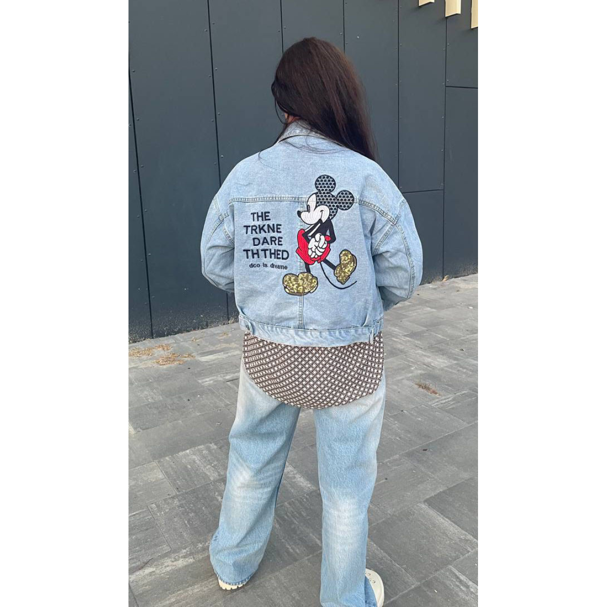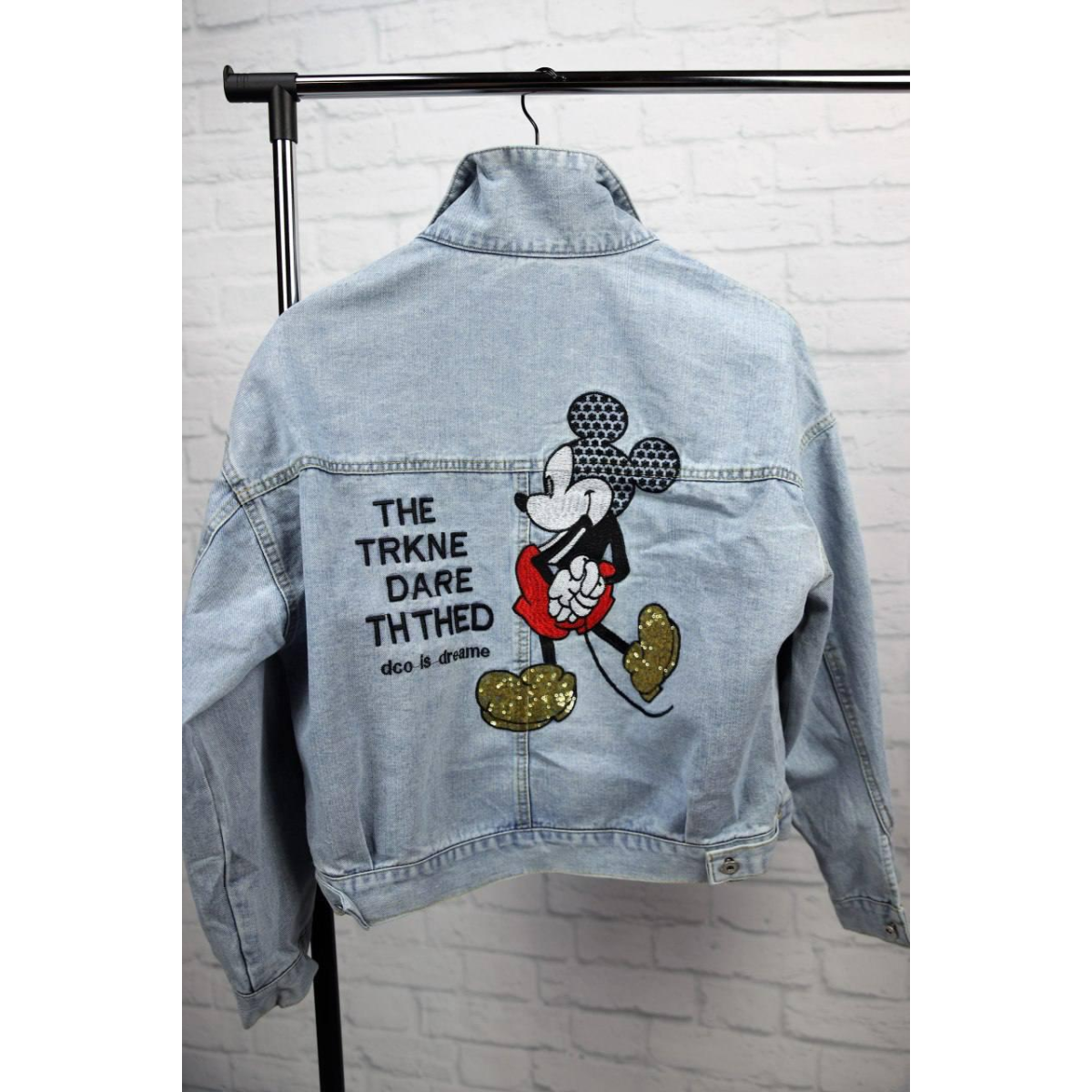 Тип виробу: жіноча джинсова куртка з карманами та вишивкою Міккі