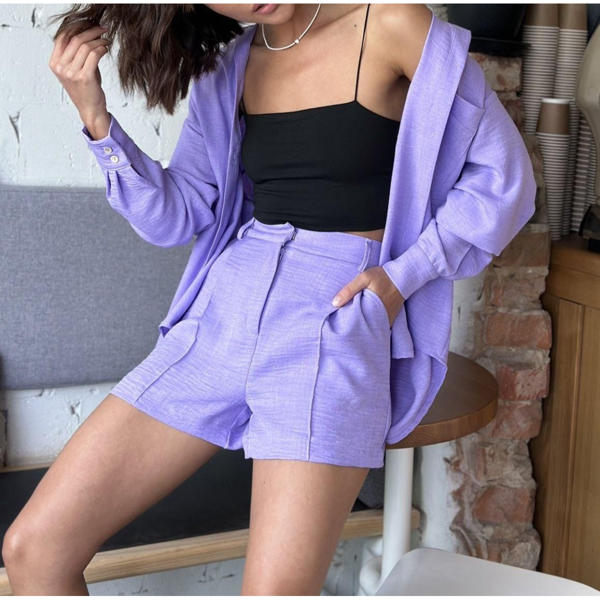 Костюм жіночий літній, льон Лавандовий, M-L
