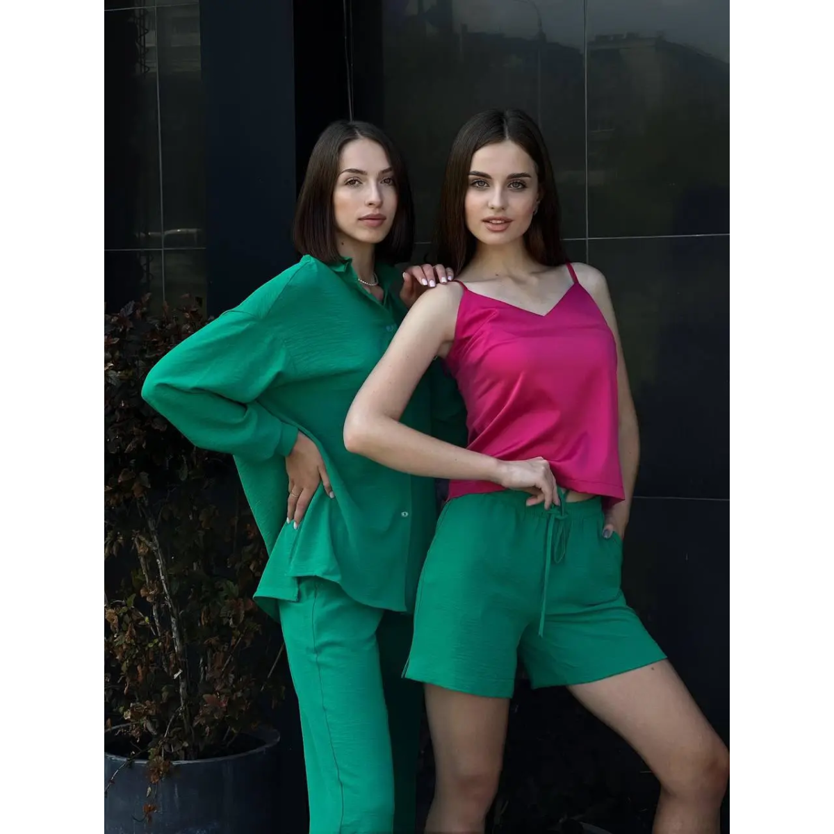Костюм-трійка жіночий літній з шортами і брюками, Зелений XS