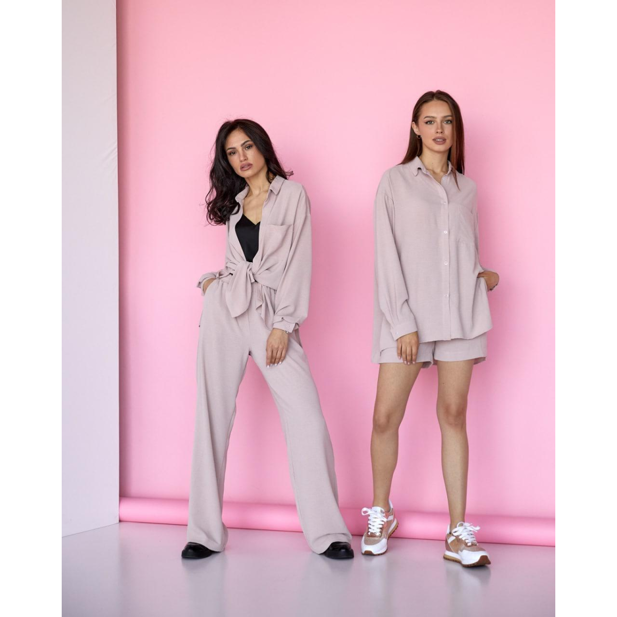 Костюм-трійка жіночий літній, креп-жатка Пудра, S
