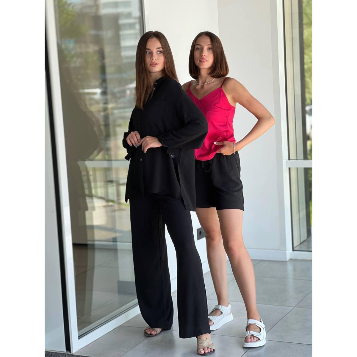 Костюм-трійка жіночий літній, креп-жатка Чорний, M
