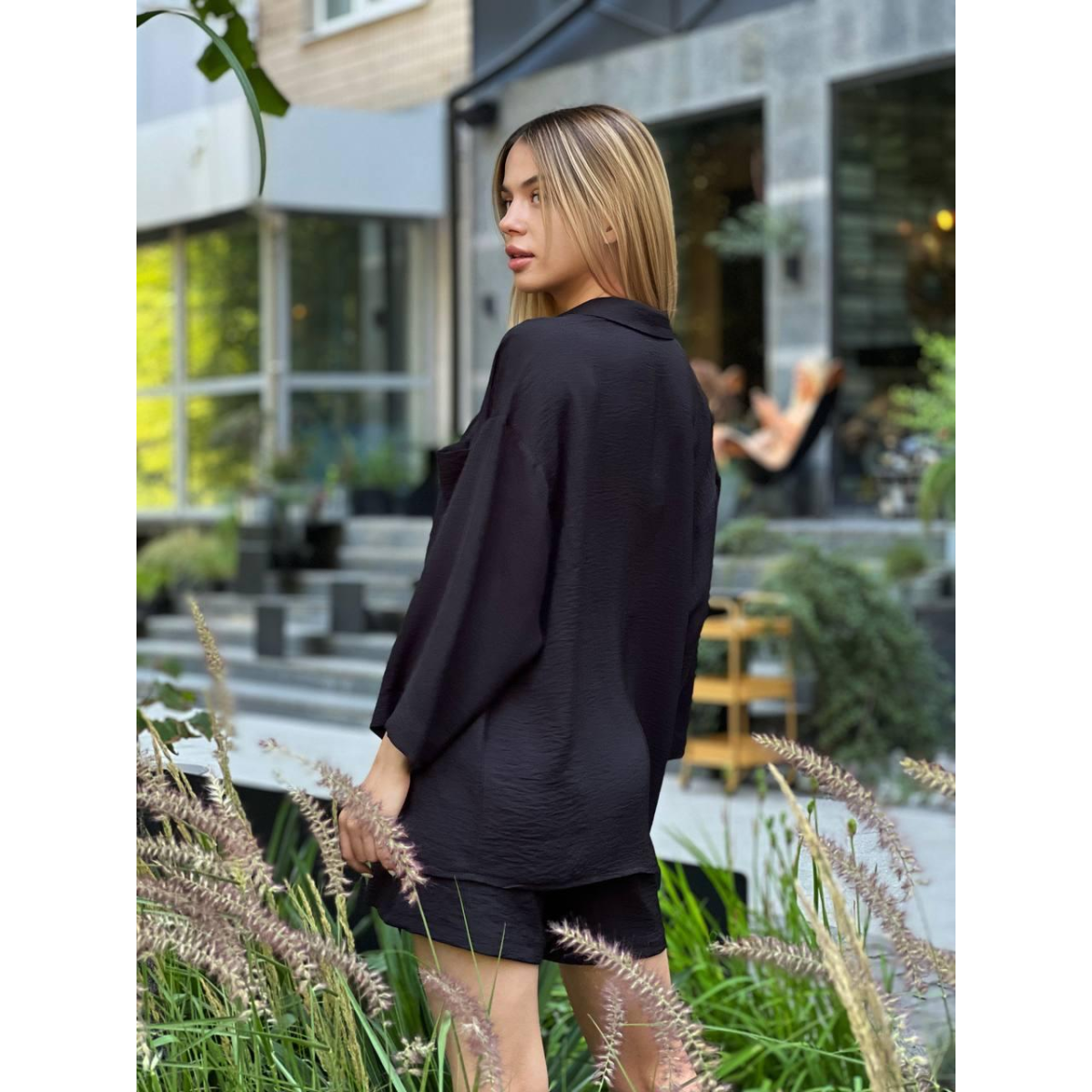 Костюм-двійка жіночий літній, креп-жатка, Чорний, S