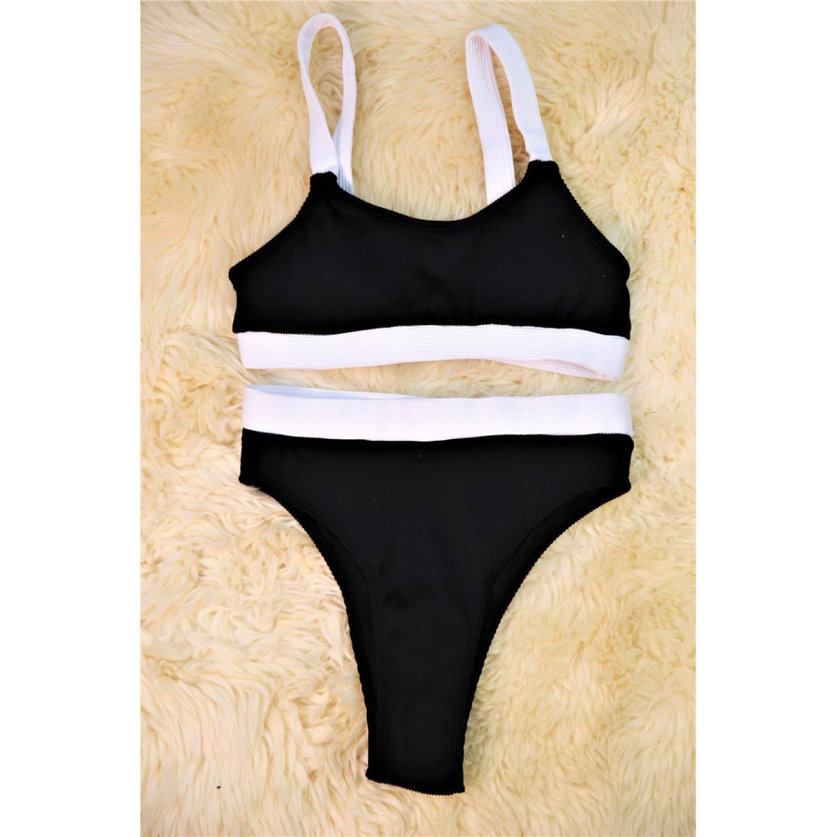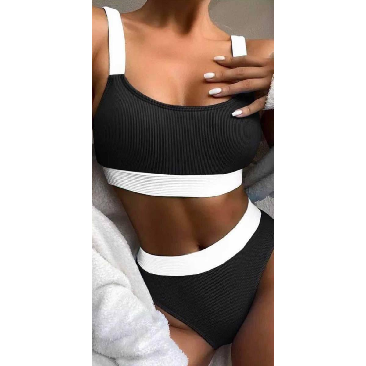 Виберіть наш роздільний купальник спортивного типу з топом і трусами з високою посадкою з тканини рубчик і насолоджуйтеся стильним і комфортним відпочинком на пляжі в цьому літньому сезоні!