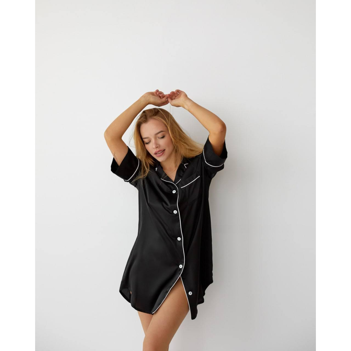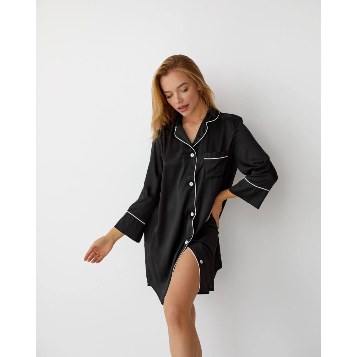 Жіноча нічна сорочка подовжена шовкова. Чорний, M