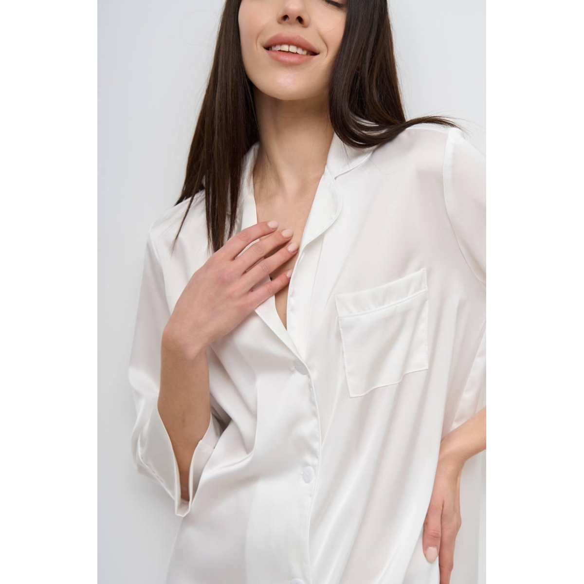 Жіноча нічна сорочка подовжена шовкова. Айворі, XL