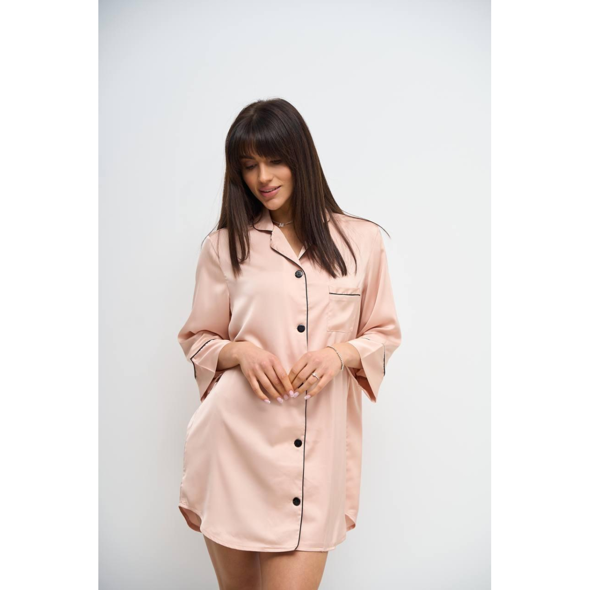 Жіноча нічна сорочка подовжена шовкова. Кремовий, L