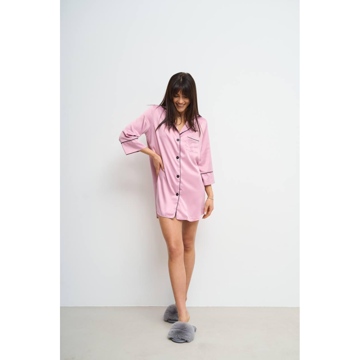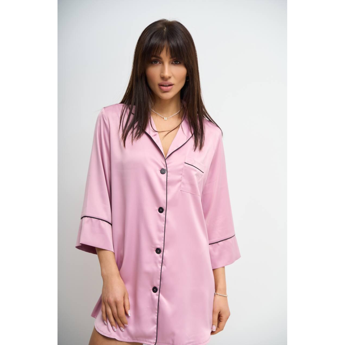 Жіноча нічна сорочка подовжена шовкова. Темно-рожевий, M
