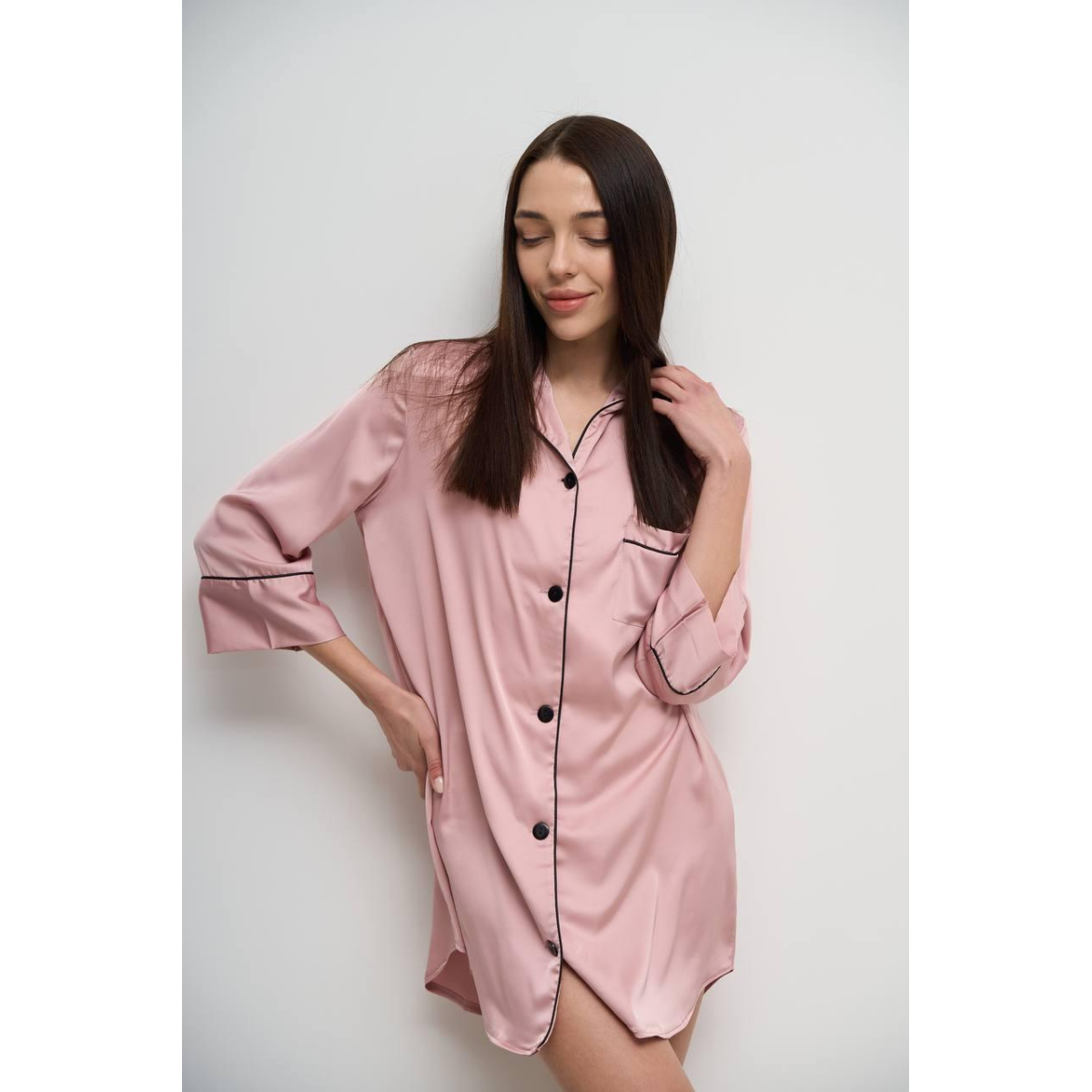 Жіноча нічна сорочка подовжена шовкова. Пудровий, M
