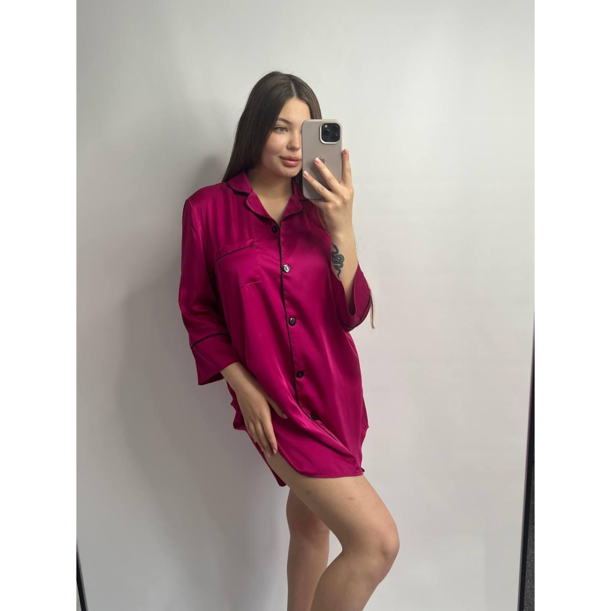 Жіноча нічна сорочка подовжена шовкова. Малиновий, M