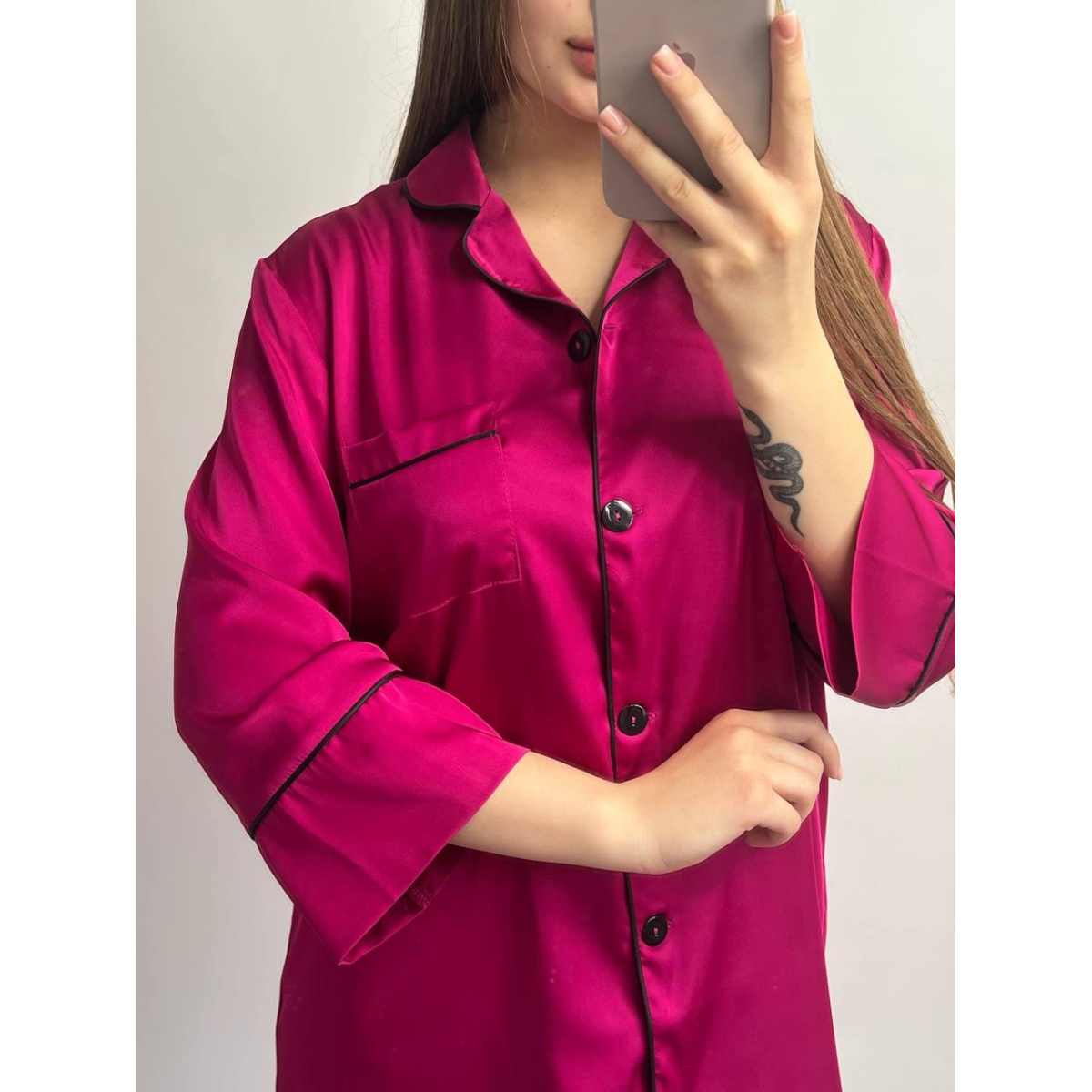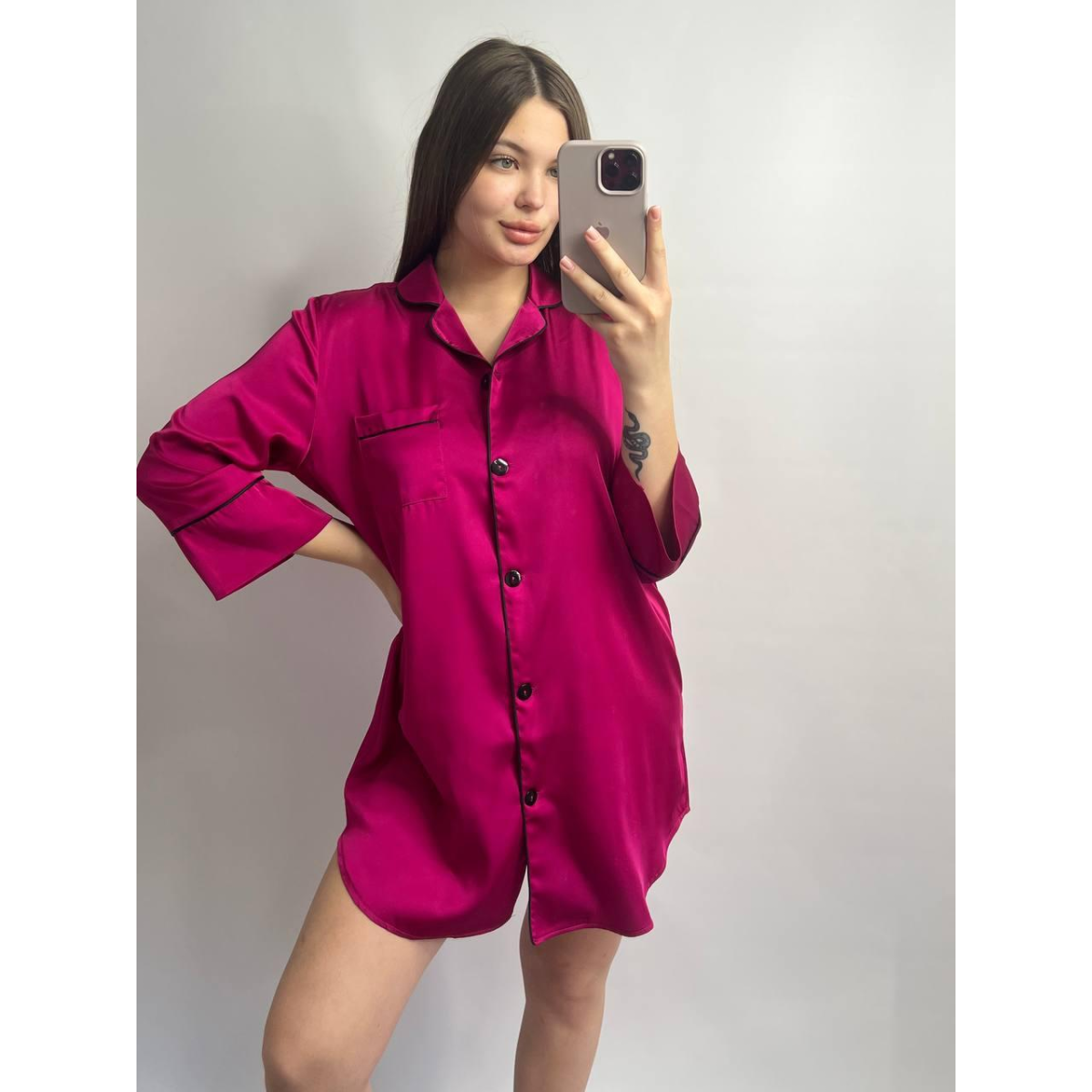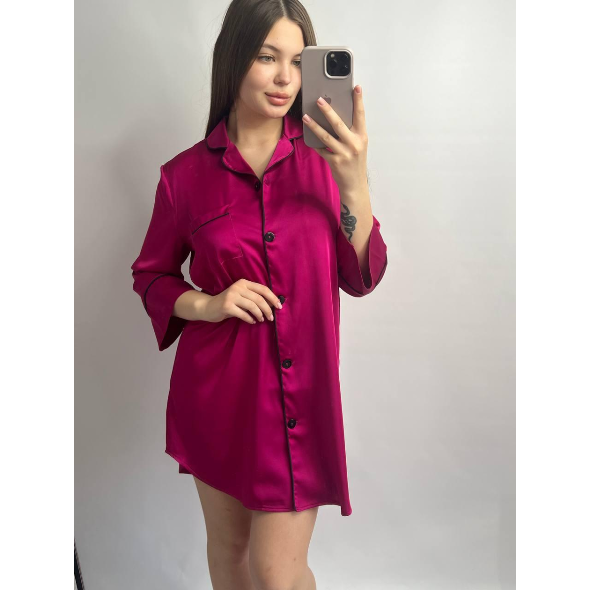 Жіноча нічна сорочка подовжена шовкова. Малиновий, XL