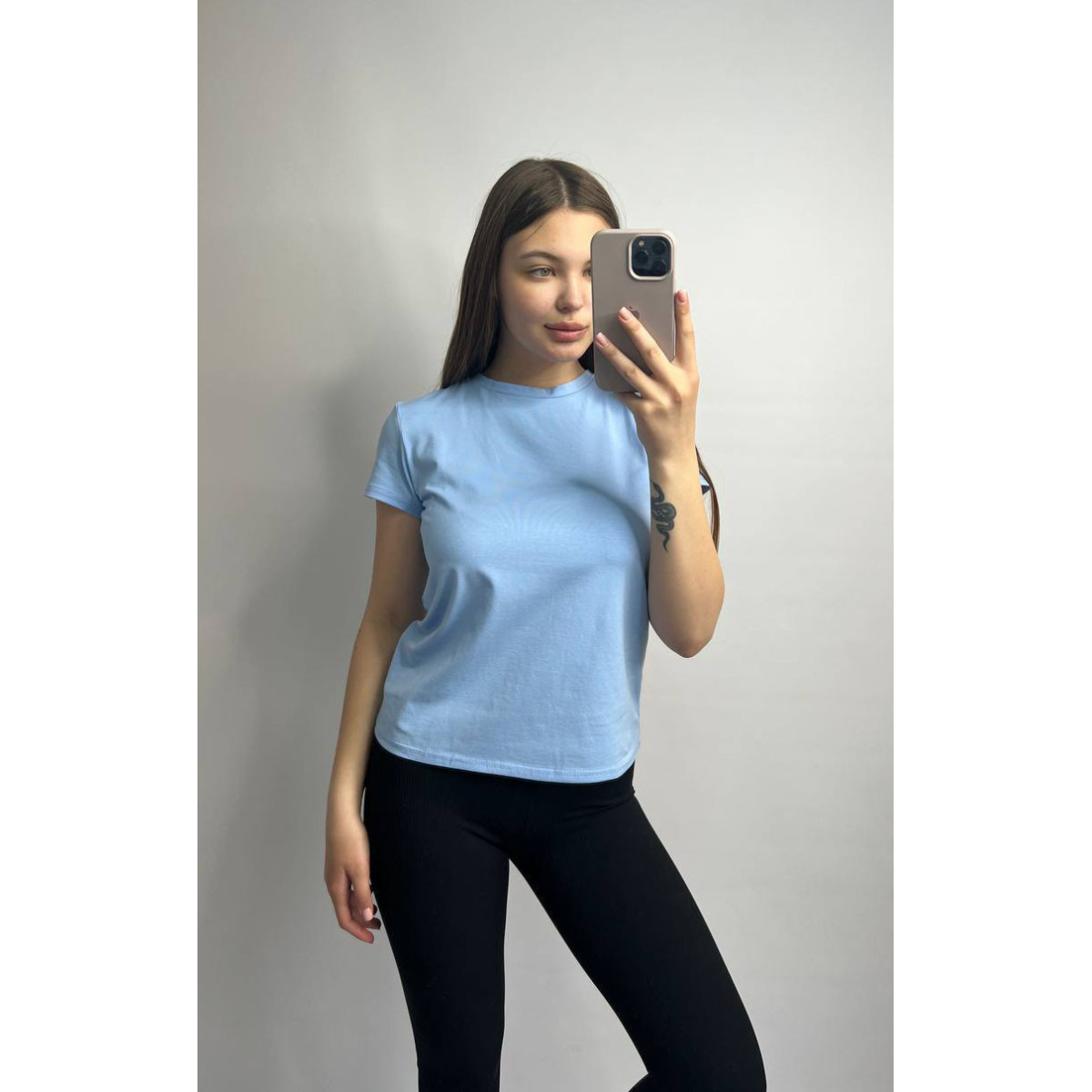 Ідеальна основа для будь-якого гардероба — жіноча базова футболка класичного прямого силуету з акуратним круглим вирізом горловини. Модель легко поєднується з джинсами, спідницями, штанами чи шортами — створюйте стильні образи на кожен день.