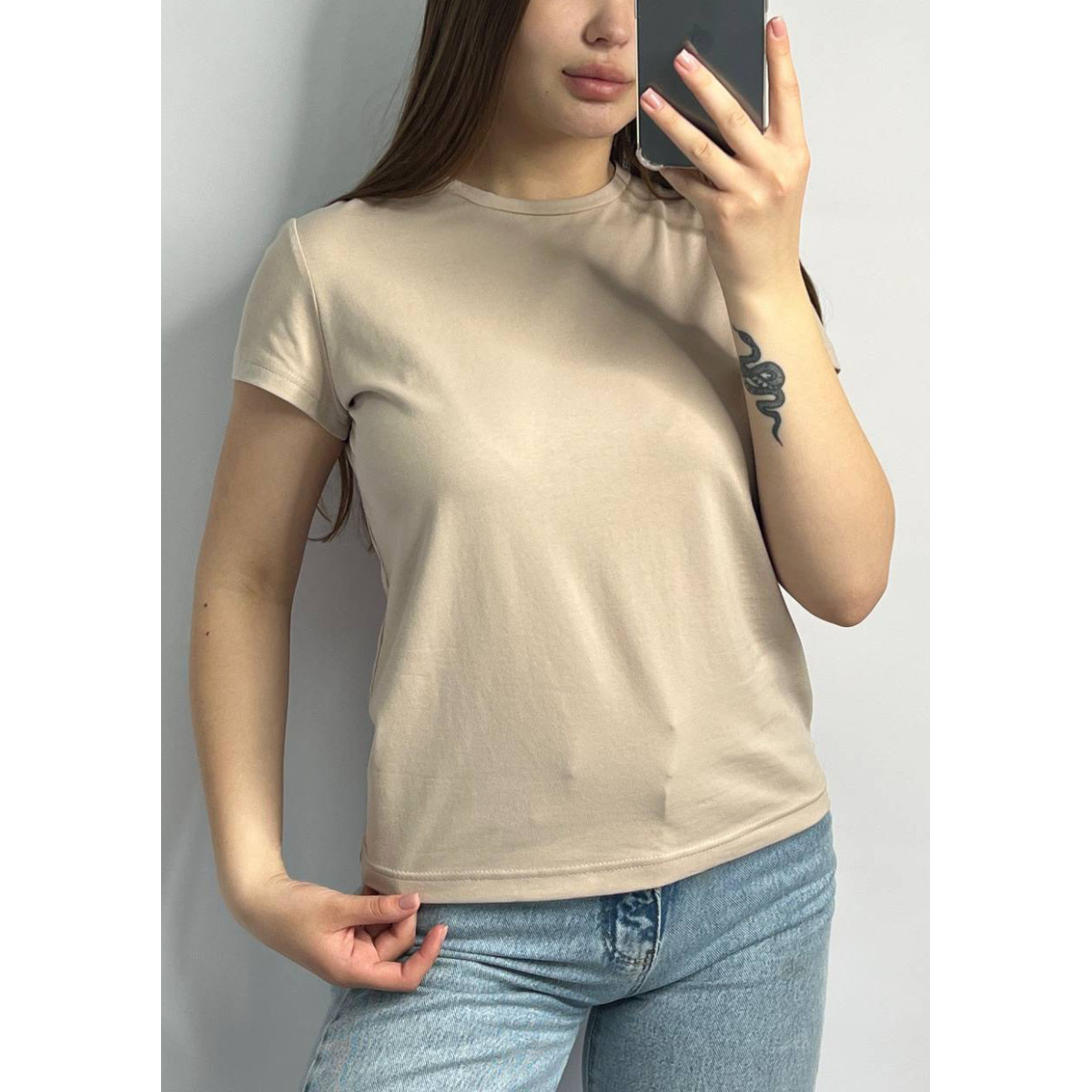 Ідеальна основа для будь-якого гардероба — жіноча базова футболка класичного прямого силуету з акуратним круглим вирізом горловини. Модель легко поєднується з джинсами, спідницями, штанами чи шортами — створюйте стильні образи на кожен день.
