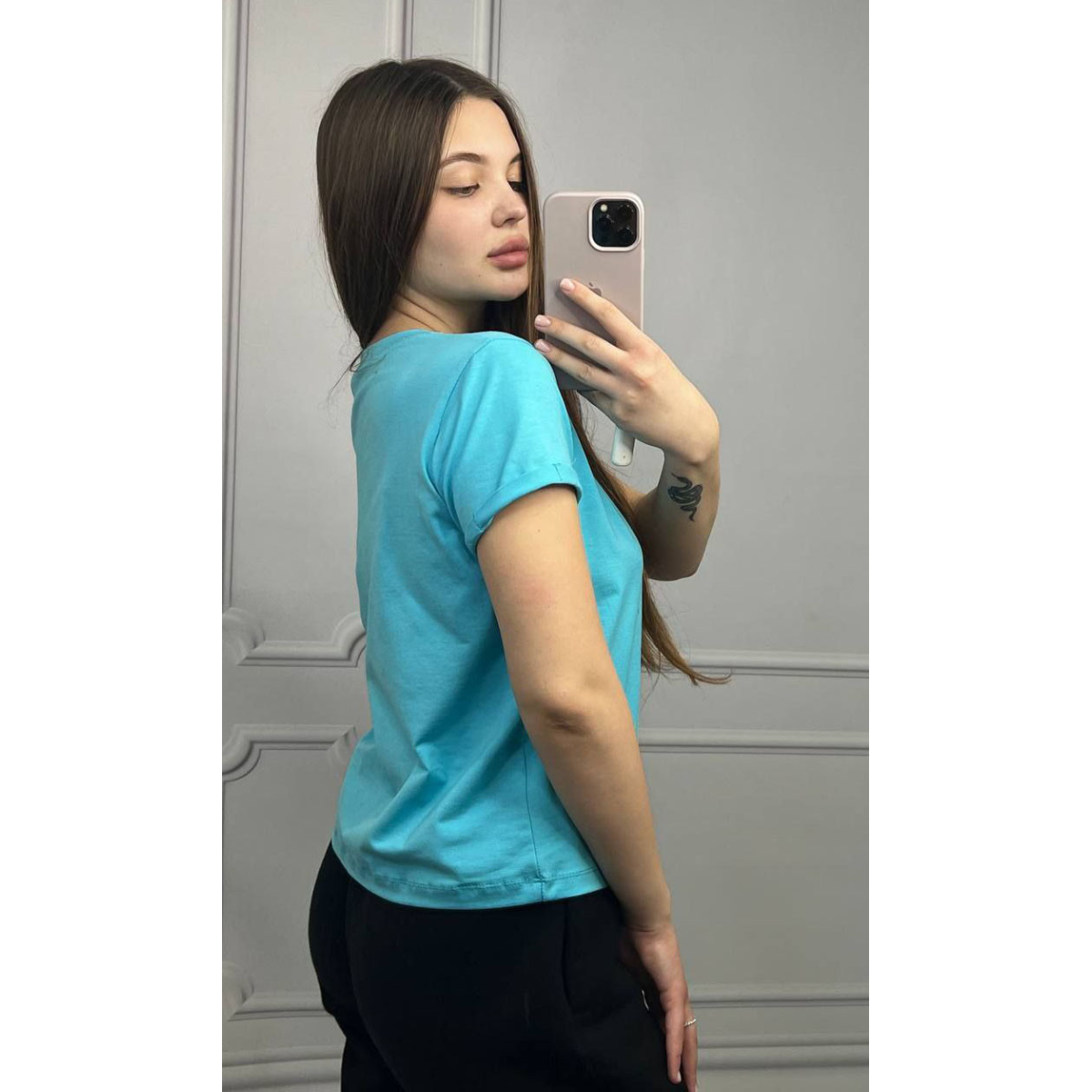 Ідеальна основа для будь-якого гардероба — жіноча базова футболка класичного прямого силуету з акуратним круглим вирізом горловини. Модель легко поєднується з джинсами, спідницями, штанами чи шортами — створюйте стильні образи на кожен день.