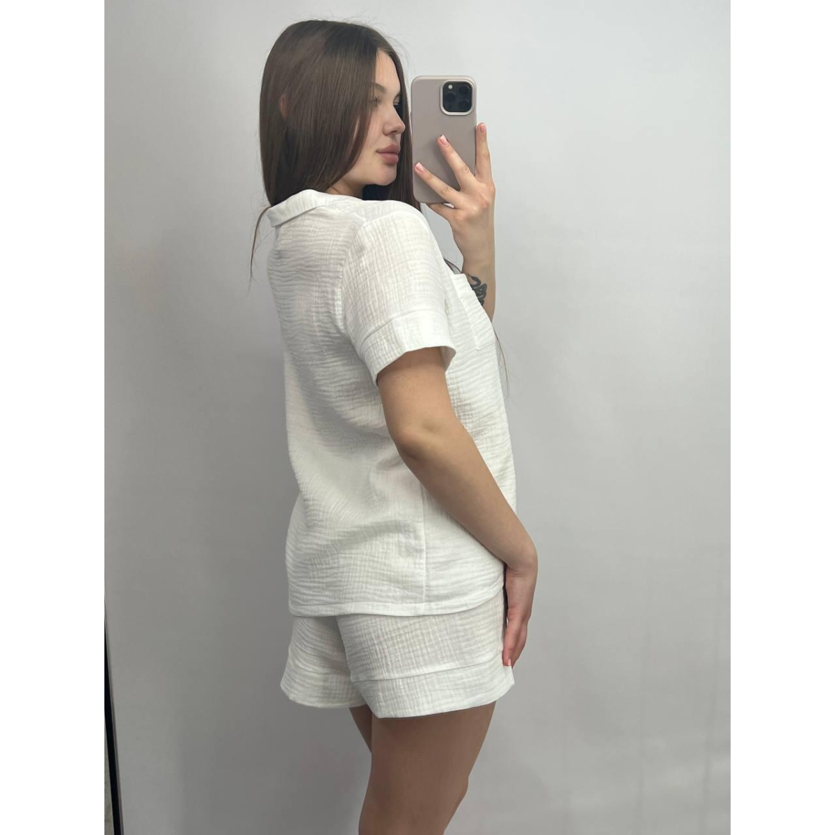 Відпочиньте у затишку та комфорті у нашому домашньому комплекті, створеному спеціально для моментів релаксу та затишку. Представляємо вам набір із сорочки з коротким рукавом на ґудзиках та шорт із натуральної тканини муслін.