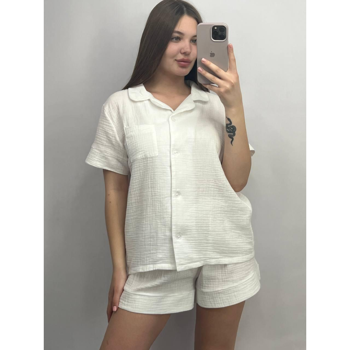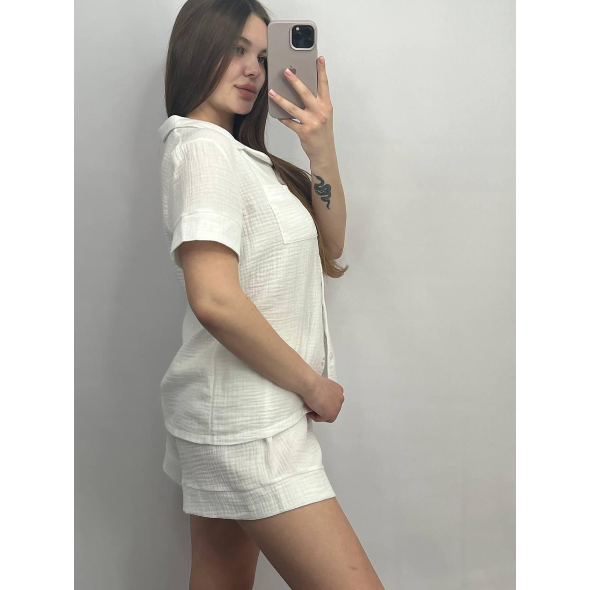 Шорти з натурального мусліну: Наші шорти виготовлені з легкого та дихаючого мусліну, який дозволить вашій шкірі дихати та відчувати себе комфортно у будь-якій ситуації. Зручний пояс із еластичною гумкою забезпечує ідеальну посадку, а вільний крій додає відчуття свіжості та легкості.