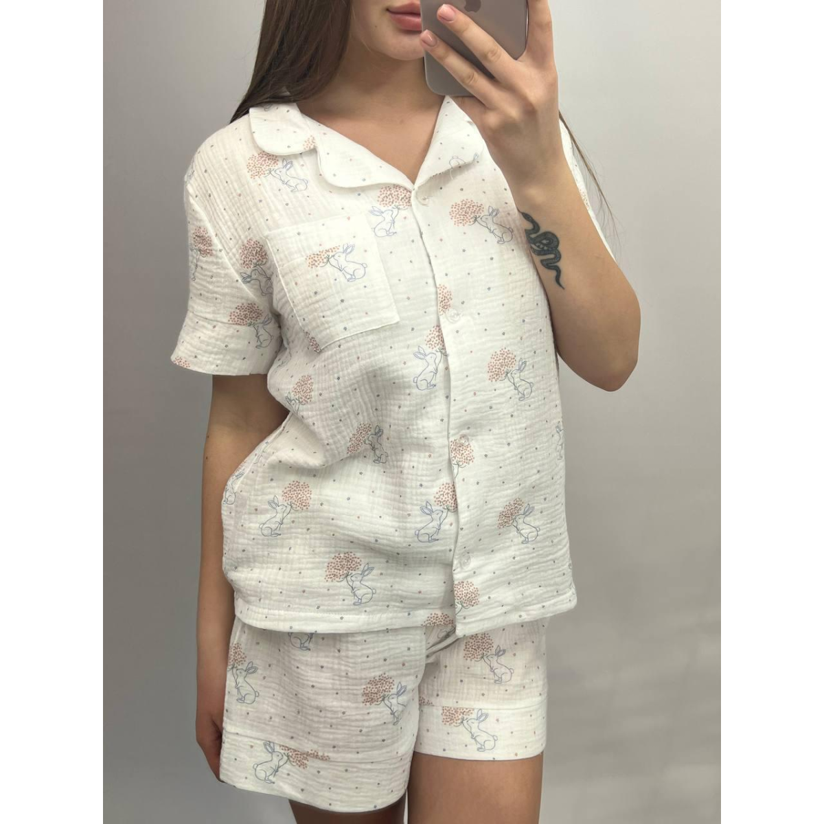 Відпочиньте у затишку та комфорті у нашому домашньому комплекті, створеному спеціально для моментів релаксу та затишку. Представляємо вам набір із сорочки з коротким рукавом на ґудзиках та шорт із натуральної тканини муслін.