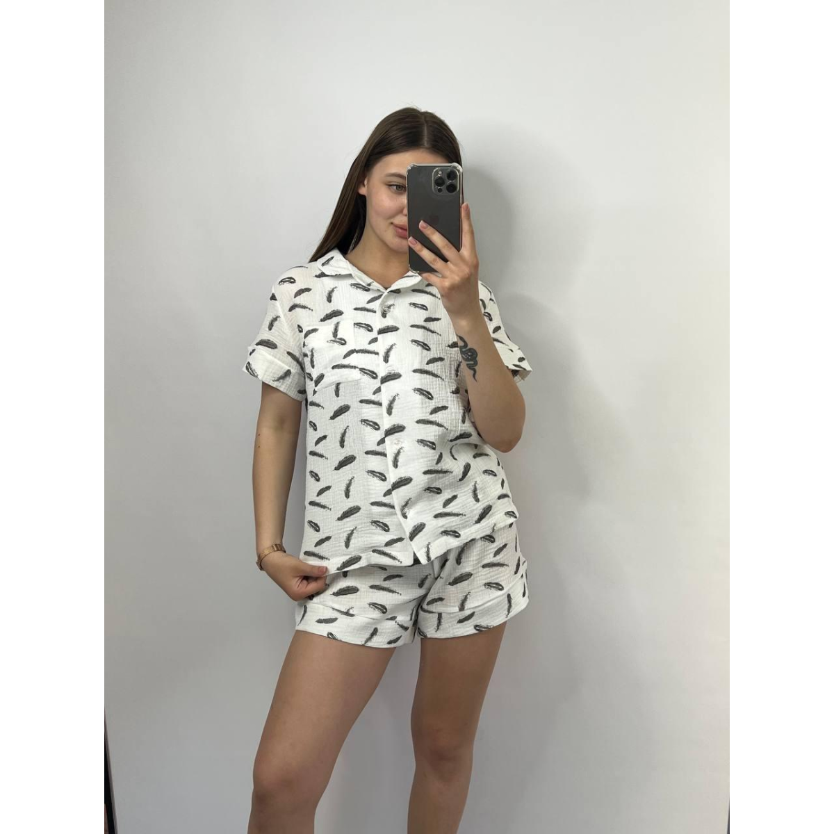 Відпочиньте у затишку та комфорті у нашому домашньому комплекті, створеному спеціально для моментів релаксу та затишку. Представляємо вам набір із сорочки з коротким рукавом на ґудзиках та шорт із натуральної тканини муслін.