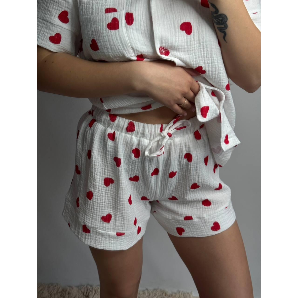 Відпочиньте у затишку та комфорті у нашому домашньому комплекті, створеному спеціально для моментів релаксу та затишку. Представляємо вам набір із сорочки з коротким рукавом на ґудзиках та шорт із натуральної тканини муслін.