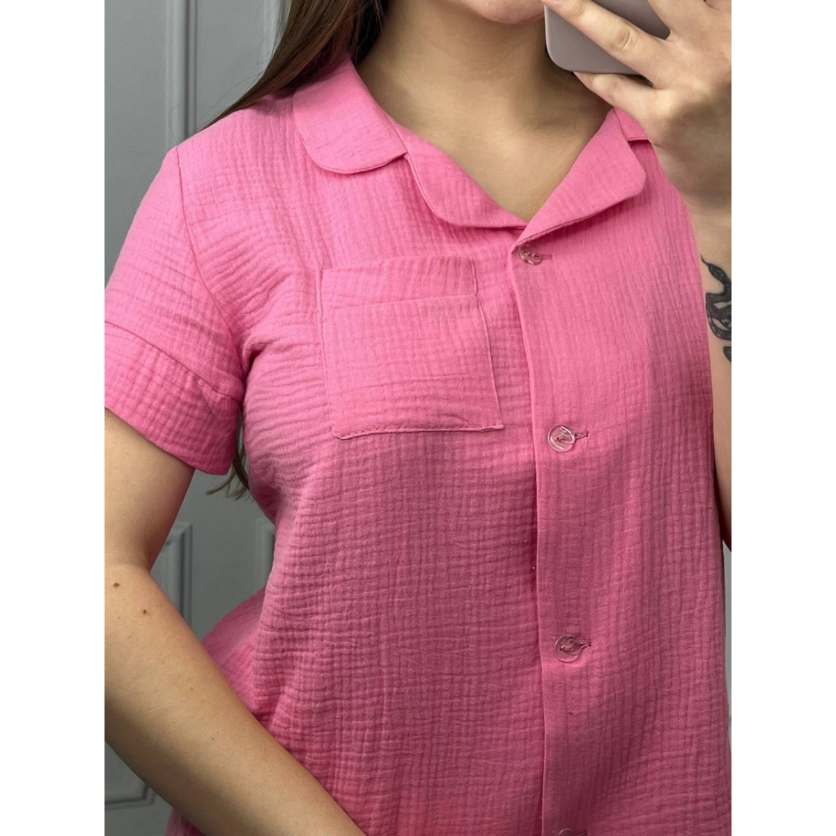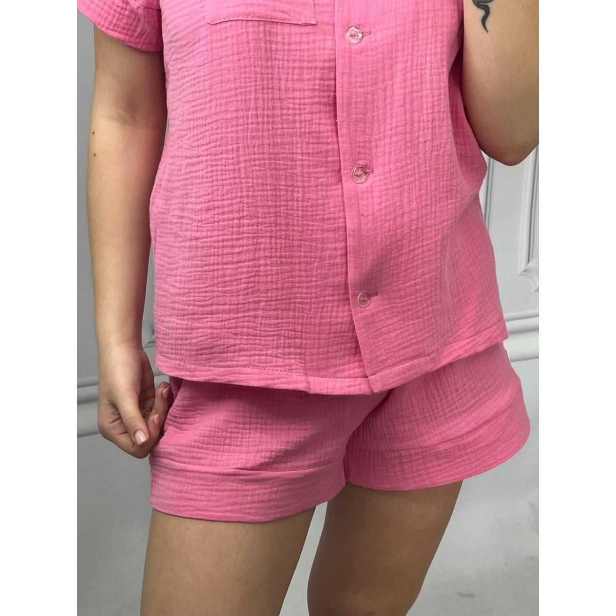 Відпочиньте у затишку та комфорті у нашому домашньому комплекті, створеному спеціально для моментів релаксу та затишку. Представляємо вам набір із сорочки з коротким рукавом на ґудзиках та шорт із натуральної тканини муслін.