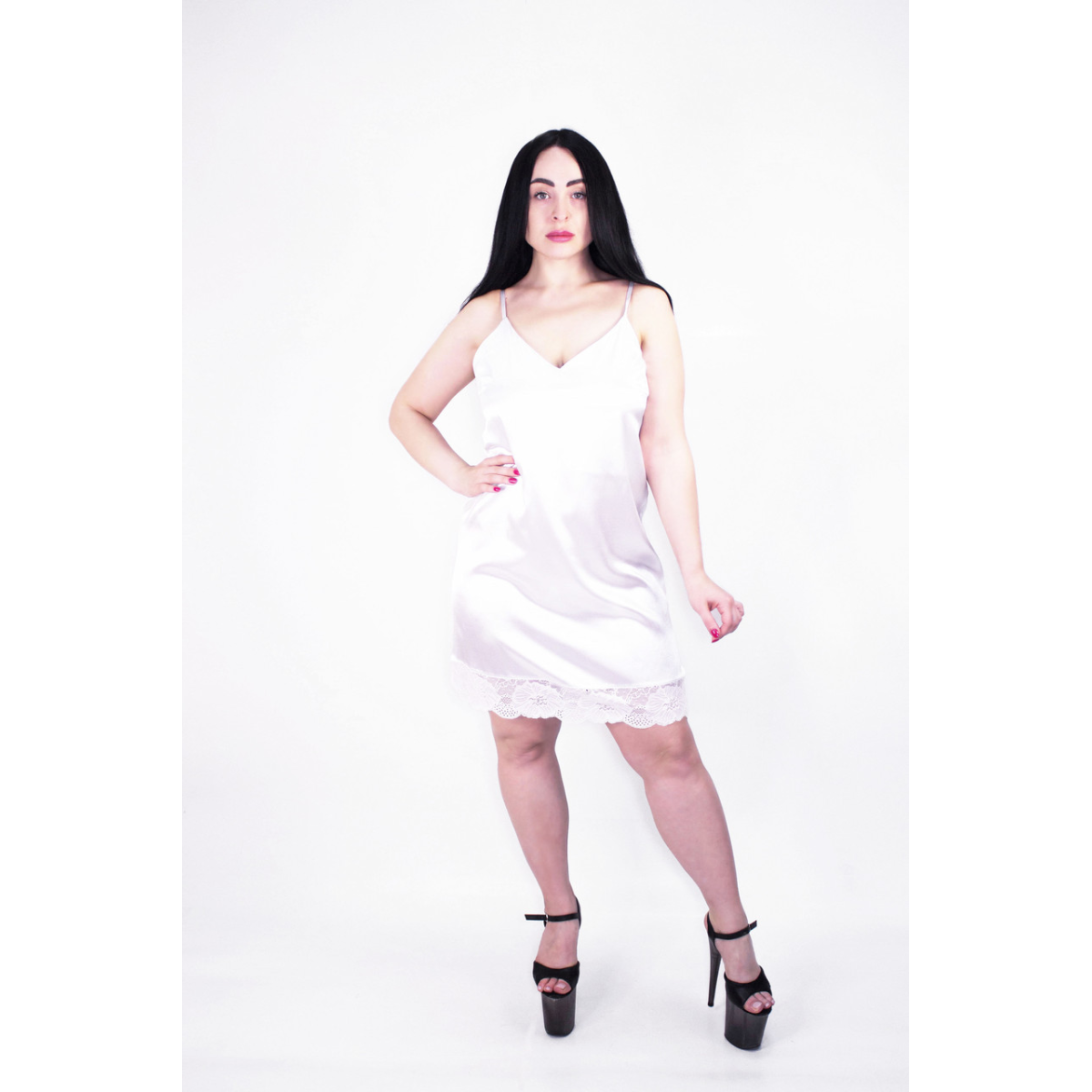 Набір нічна сорочка з халатом, з мереживом білий XS