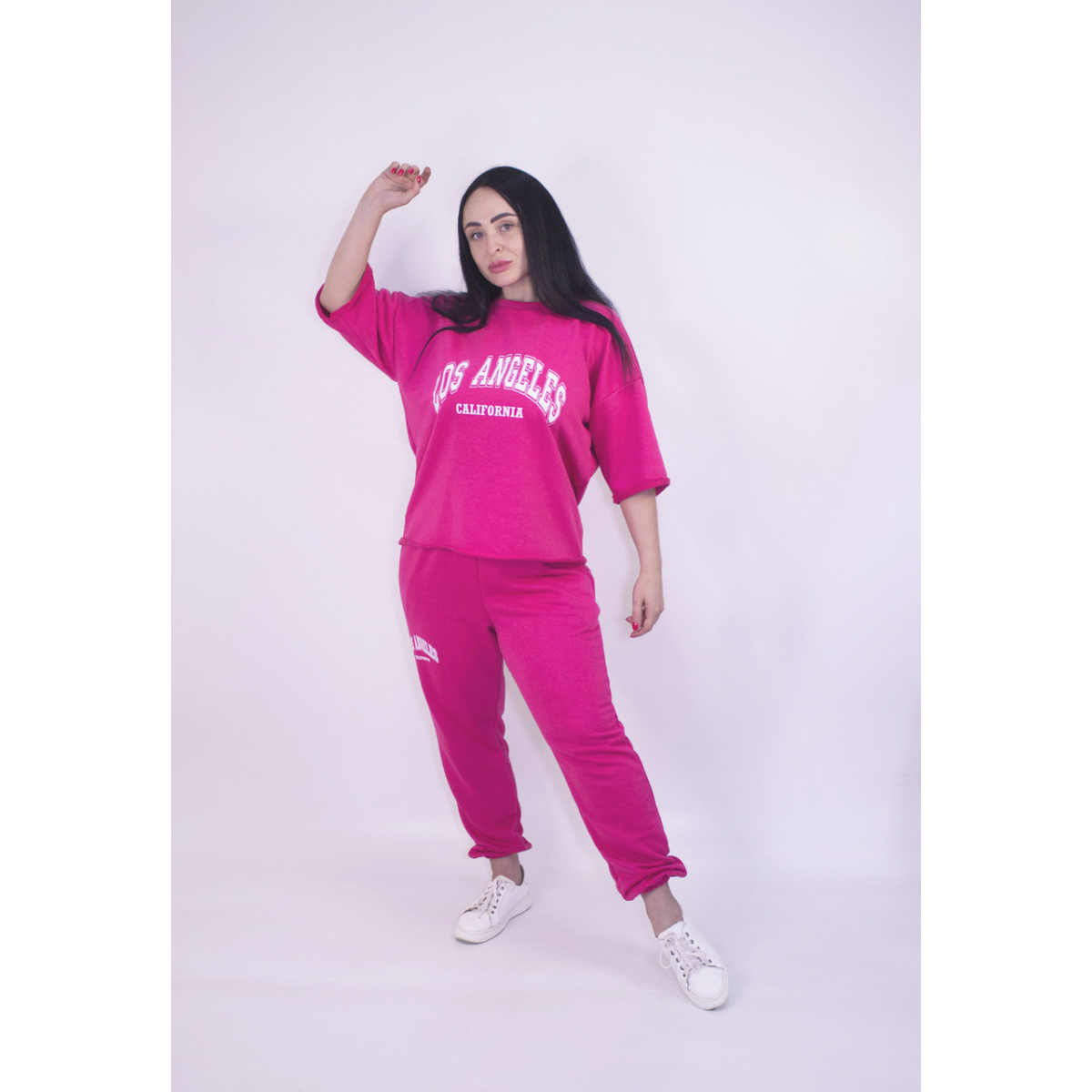 Костюм жіночий літній (футболка + штани) трикотажний Малиновий, XL-2XL